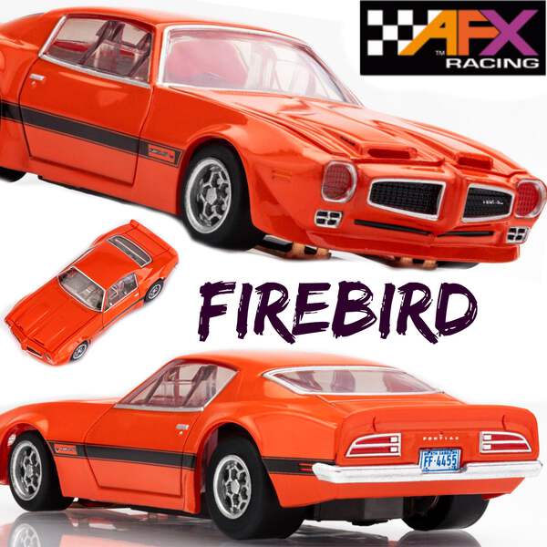 This AFX 1970 + 1972 Pontiac Firebird Formula 400 HO slot car comes with the brand new Mega-G+ chassis that is completely re-designed to be smoother, quieter, 5% lighter, better handling, easier to drive, more durable, more consistent, uses 33% less electricity and runs cooler than the original Mega-G chassis.