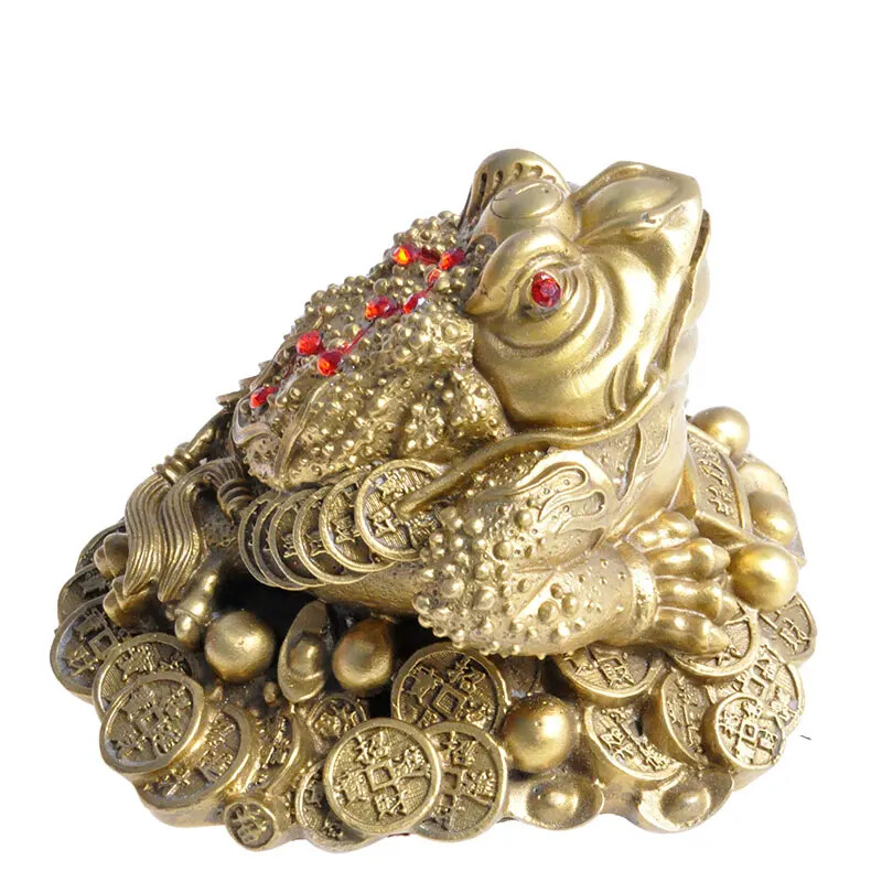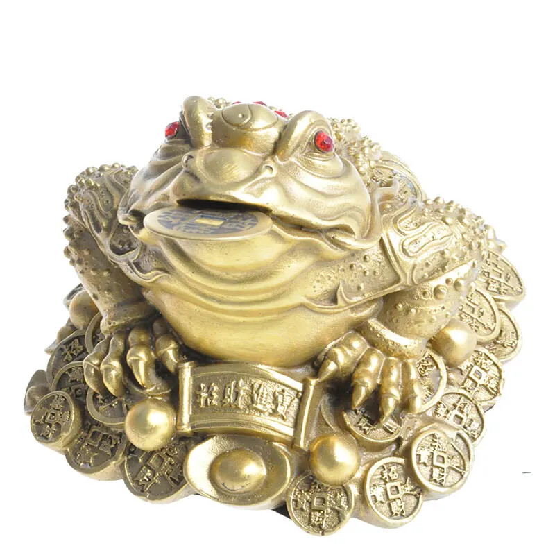 Feng Shui Toad Money LUCKY Fortune Wealth Golden Frog Home Decor Ornaments