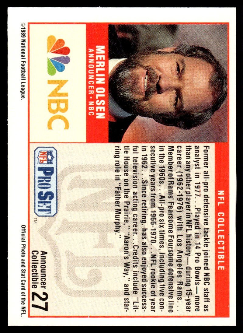 | 1989 Pro Set Announcers Merlin Olsen Los Angeles Rams #27 |
