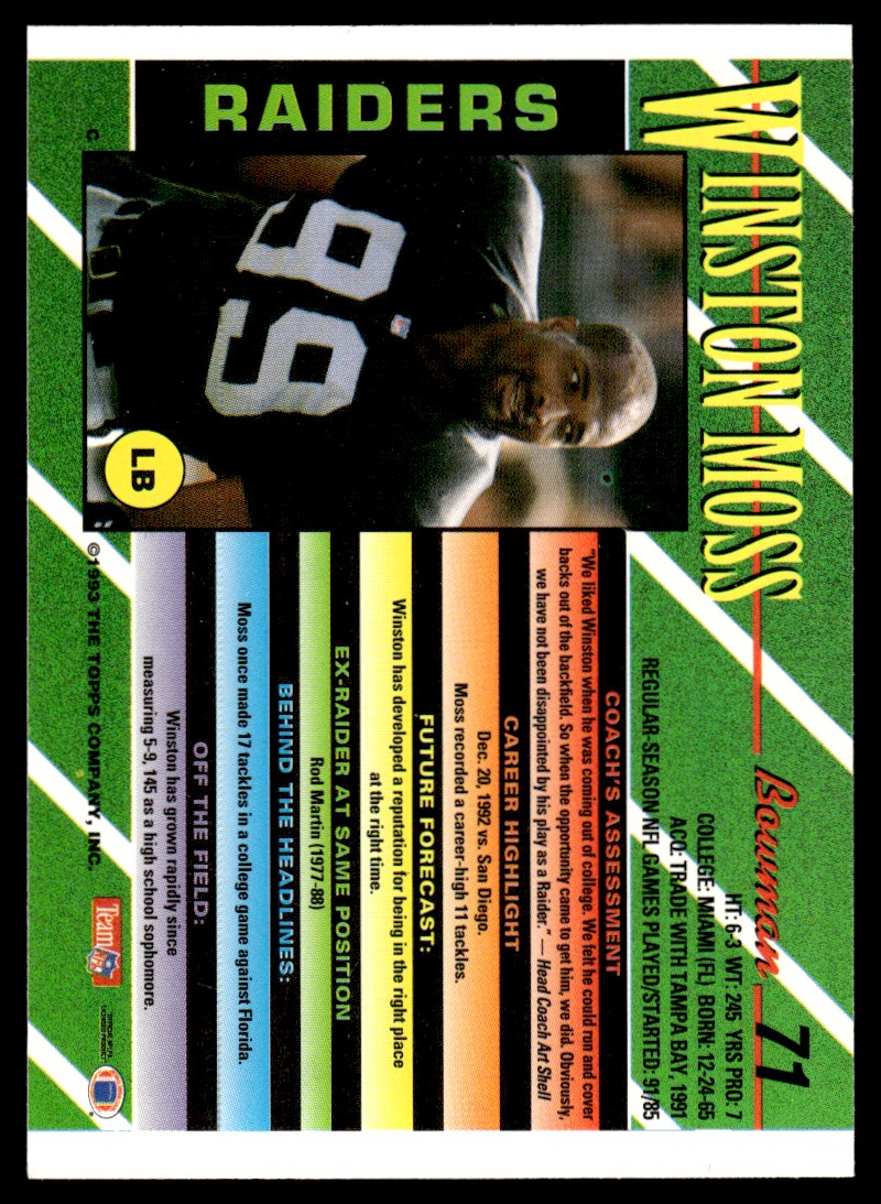 | 1993 Bowman Winston Moss Los Angeles Raiders #71 |