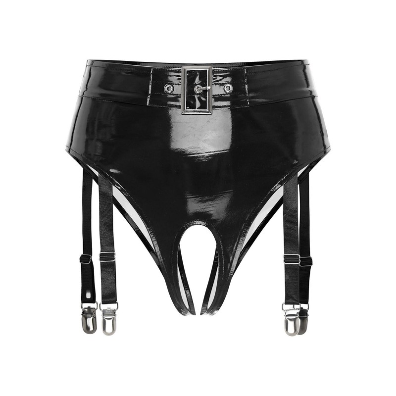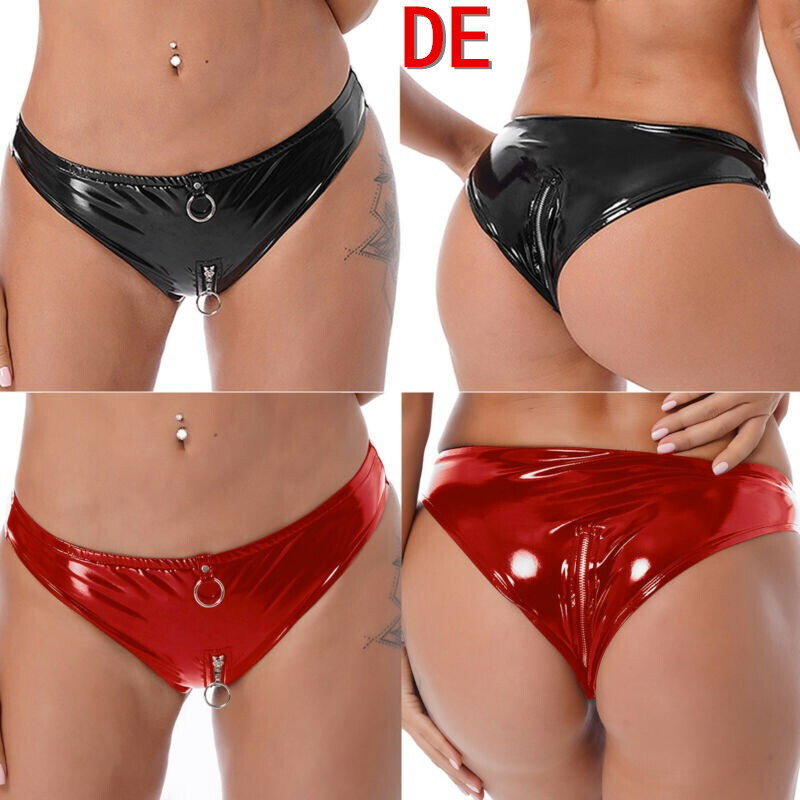 Slips aus Lackleder für Damen, Unterwäsche mit elastischem Bund.