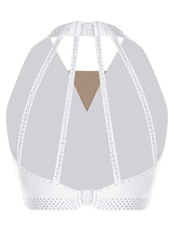 Sparkly rhinestones adorn the crop top, making it stand out on stage and adding a glamorous and eye-catching element.
