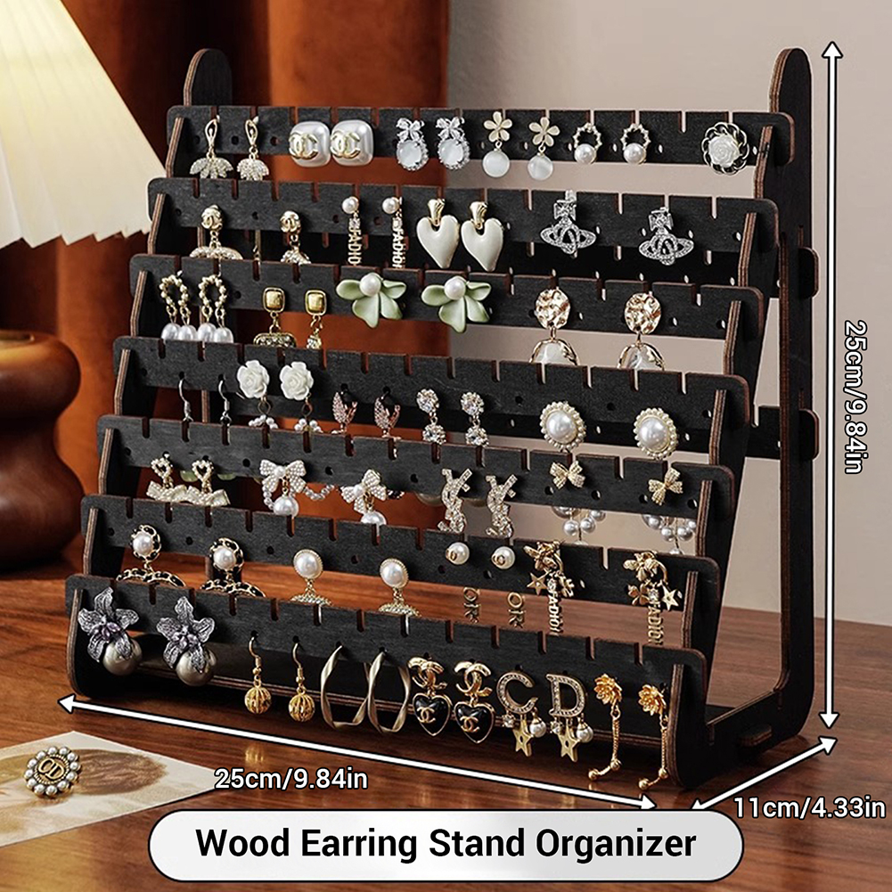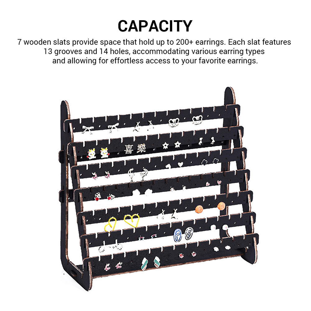 Capacity: 7 wooden slats provide space that hold up to 200+ earrings. Each slat features 13 grooves and 14 holes, accommodating various earring types and allowing for effortless access to your favorite earrings.