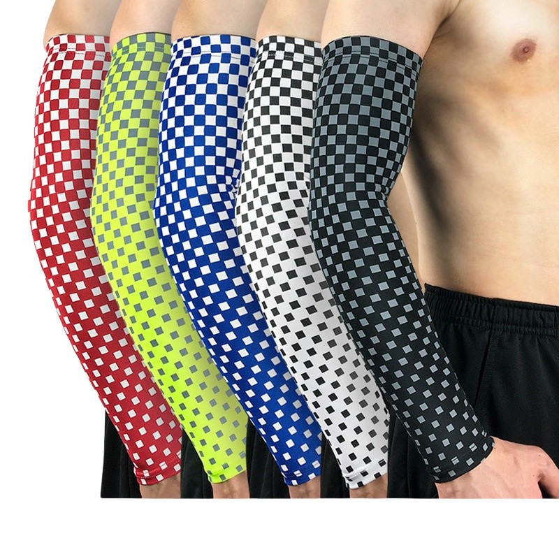 Plaid Arm Sleeve Basketball Running Sports UV Sun Protection Protective Gear