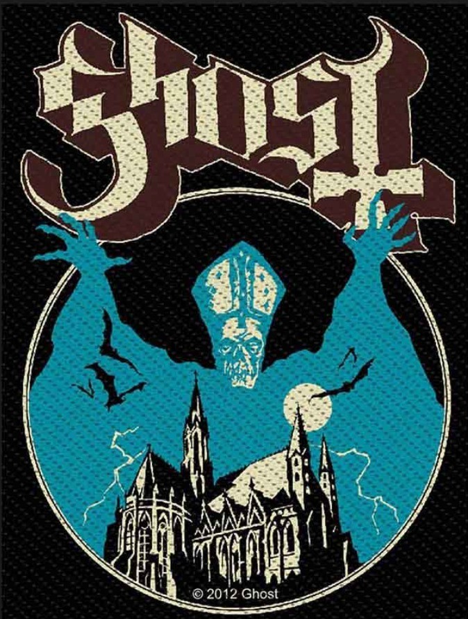 An official licensed Ghost standard patch featuring the Opus Eponymous design motif, taken from the band’s debut album. This woven patch is finished with an overlocked edge and designed for sew-on application—ideal for jackets, bags, and battle vests.
