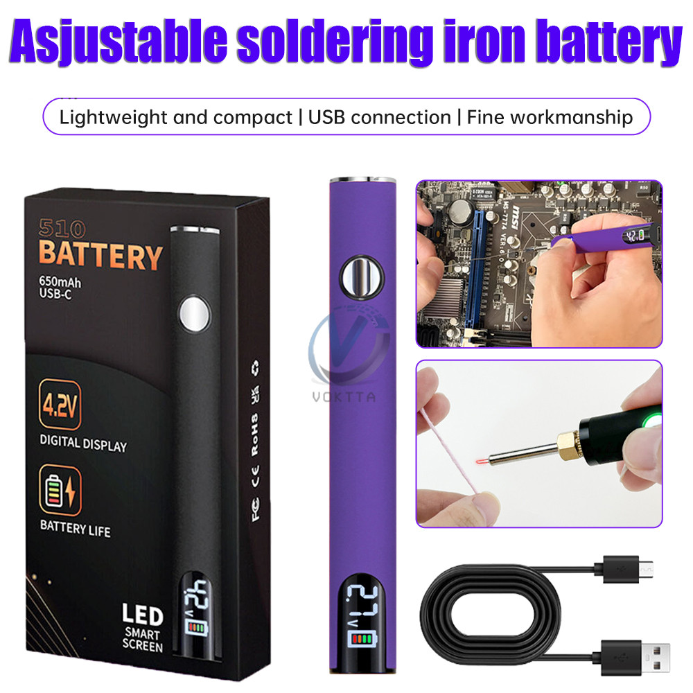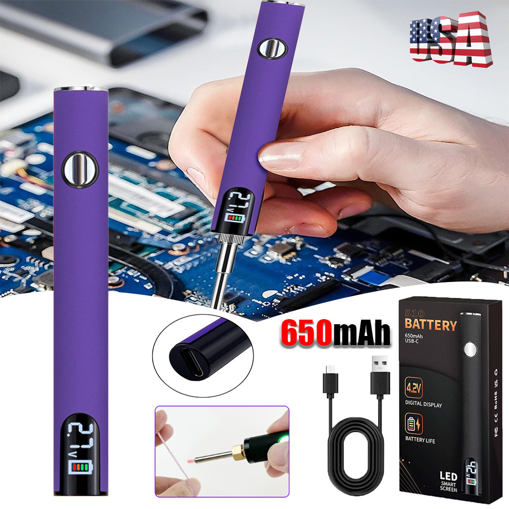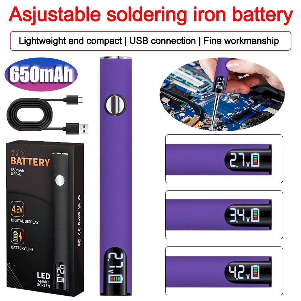 Features: Precision Control: Get perfect results with this Soldering Iron Kit that weighs only 33 grams. Its pen-shaped design makes it easy and convenient to handle, carry, and use for both home projects and professional repair work, providing precision control and portable efficiency Efficient Heating: Achieve your desired temperatures quickly and easily with the 2.7V, 3.7V, and 4.2V efficient heating capabilities of this soldering iron kit. Equipped with a powerful 650mAh battery and three-speed adjustable voltage function, adjust the temperature to fit your various soldering needs with ease Upgrade Your Game: With an LED display, intelligent temperature control system and real-time monitoring of battery life and performance, our Soldering Iron Kit ensures the right temperature for precise workmanship Versatile Connector: Ensure accurate and efficient electronic component welding or handicraft production with our Soldering Iron Kit. It boasts compatibility with a range of 510 threaded accessories and features a multifunctional 510 connector, providing enhanced precision and versatility for all your welding and wire burning needs Easy and Easy Charging: Upgrade your soldering game with our Soldering Iron Kit's USB-C port charging feature. The easy and convenient charging ensures uninterrupted power outdoors, so you can tackle all your tasks with efficiency This soldering kit for electronics features effortless handling for home projects or professional repair work. It features efficient heating with intelligent temperature control, USB charging, and a multifunctional 510 connector. Specifications: Welding nozzle and grounding voltage: 2.7-4.2V Power supply mode: USB Battery capacity: 650mAh Joint set: pointed end, heads, horseshoe, wire burning head (four types of joints) Packing List: - Option1: Color:purple 1x Electric soldering iron only 1x Charging cable x1"