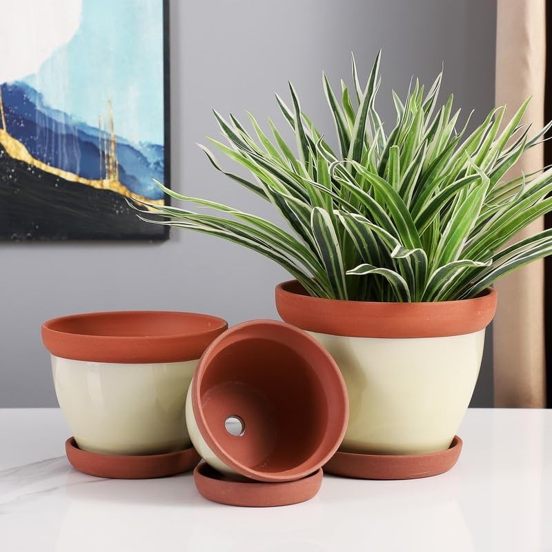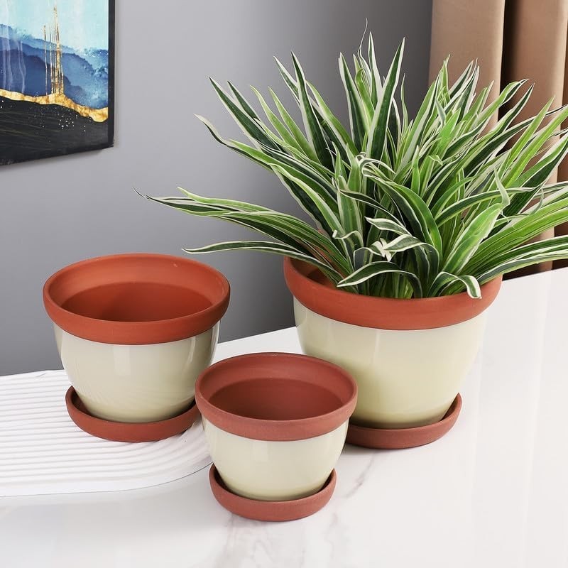Includes 3 elegantly designed terracotta pots in sizes 5, 6, and 7 inches.