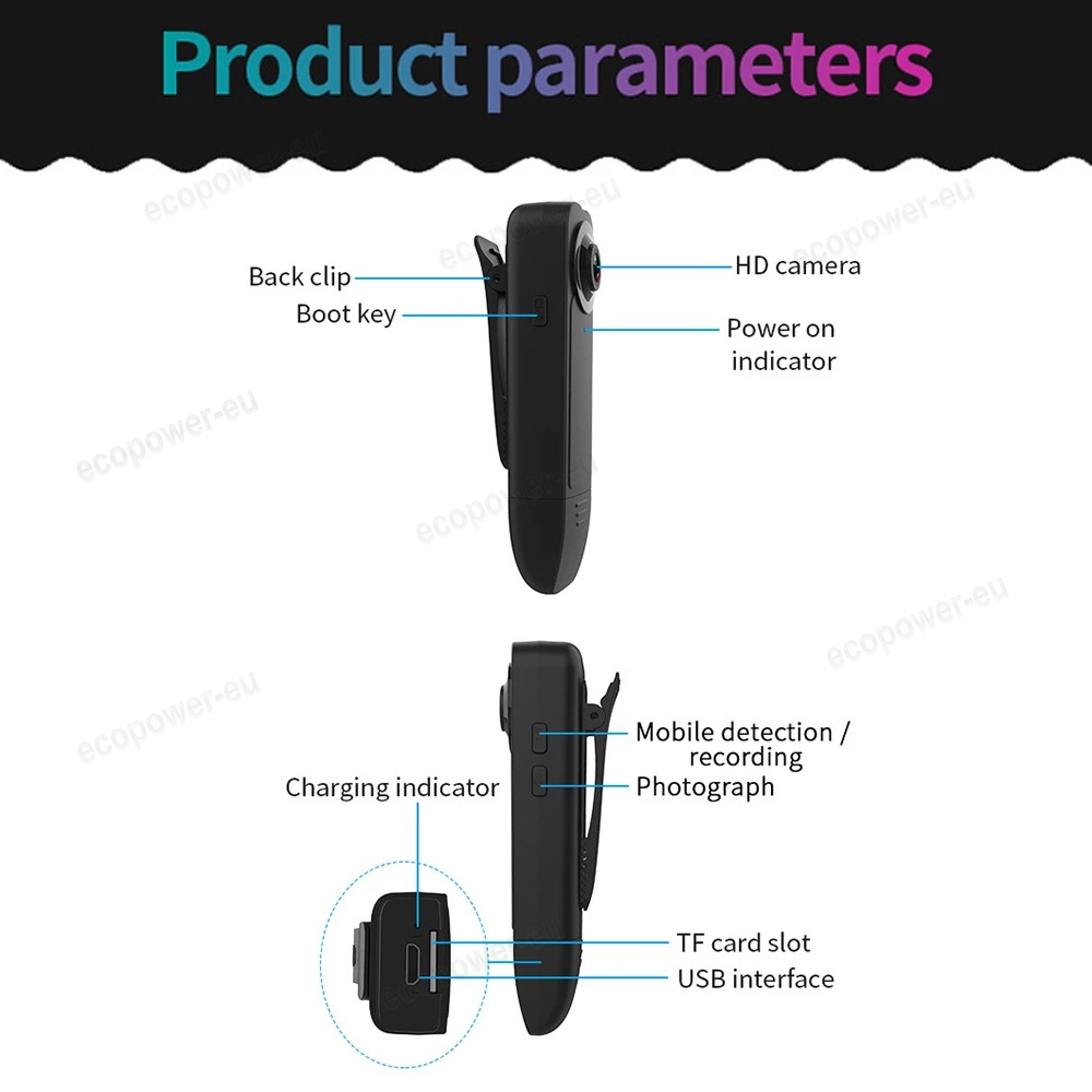 【FHD 1080P Camera】A18 body camera captures videos and photos in stunning FHD resolution. The Bodycam recorder is a portable
