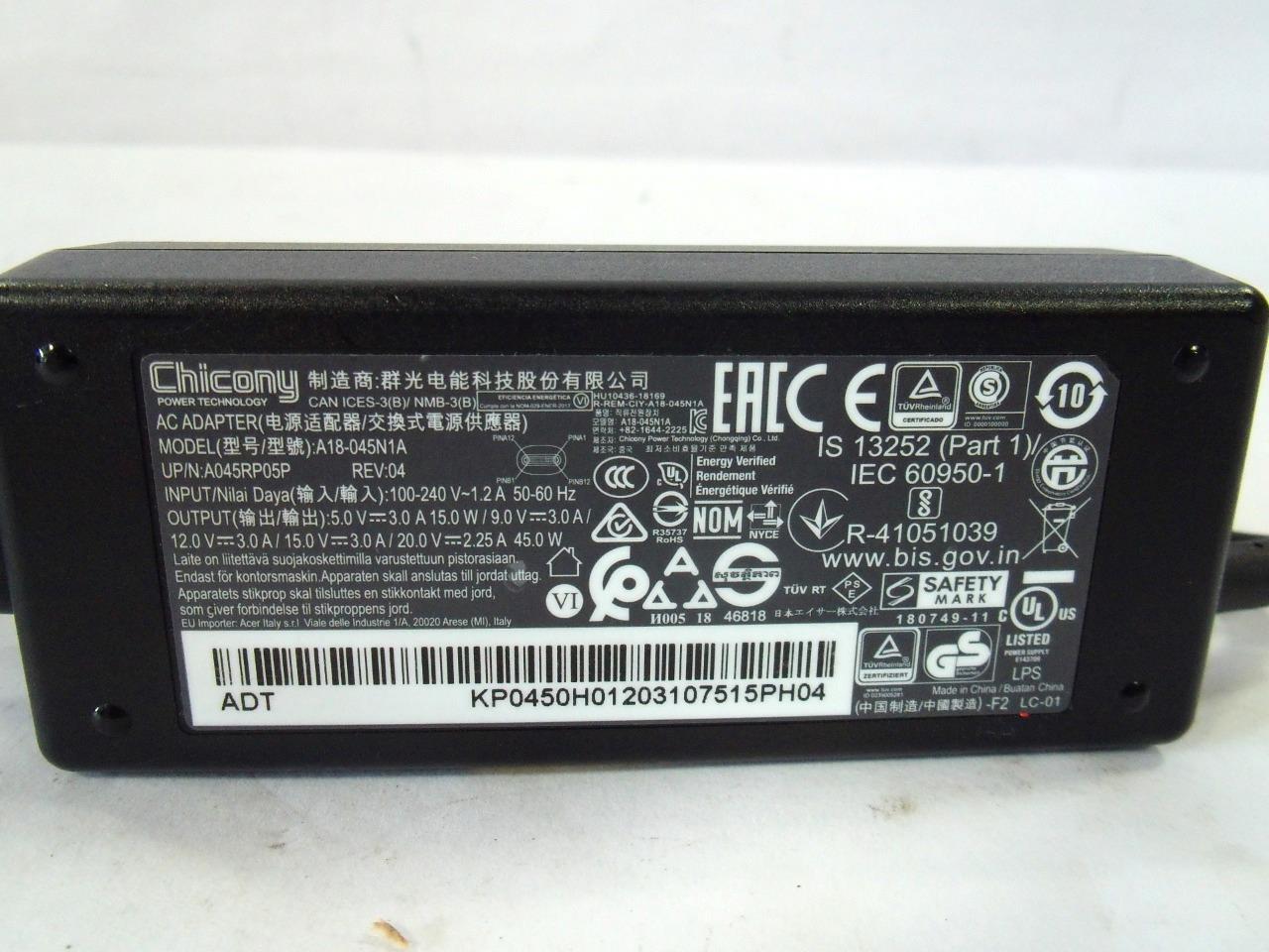 Chicony AC Adapter 20V 45W A18-045N1A A16-045N1A UP/N A045RP05P