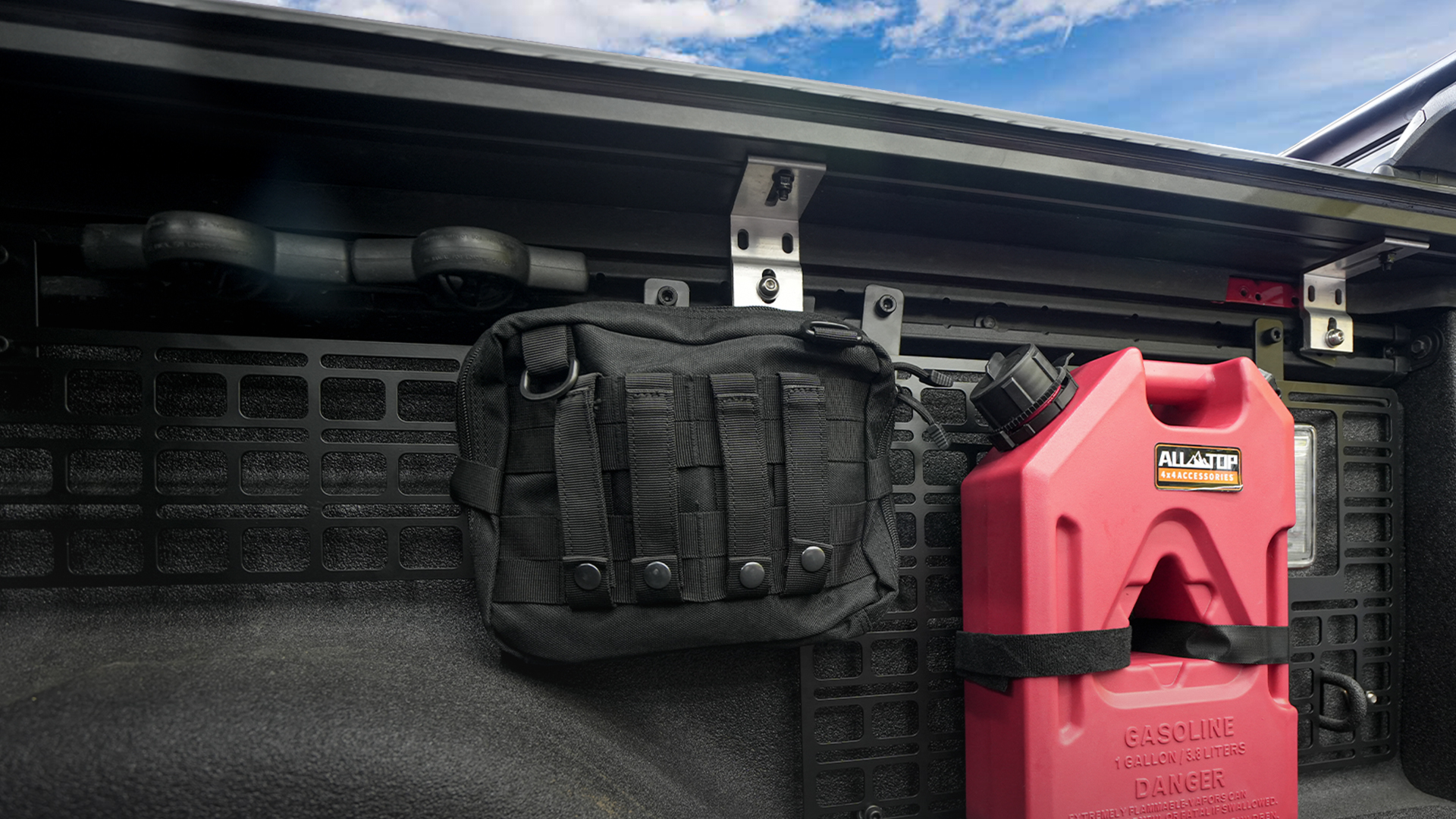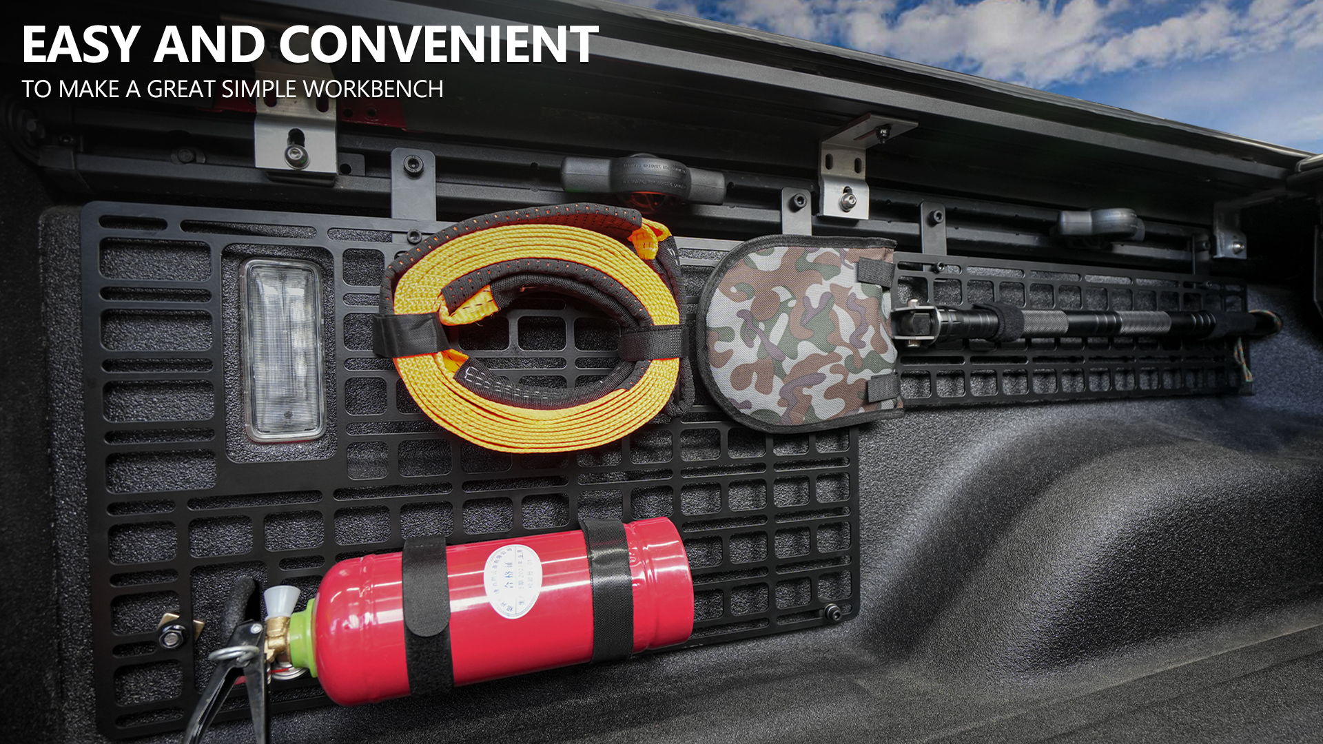 3.Various Function:Bed mounting system for gladiator can be used to organize and fix various tools, so that they do not need to be messy in the pickup bucket, placed in the bucket, the vehicle will be bumpy, fixed on the tail door, can be a good arrangement of the interior space, help you make full use of space, make your pickup more tidy.