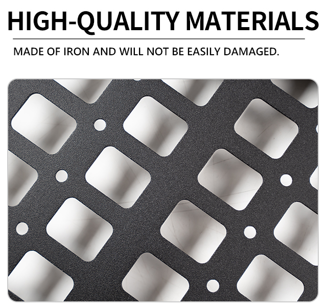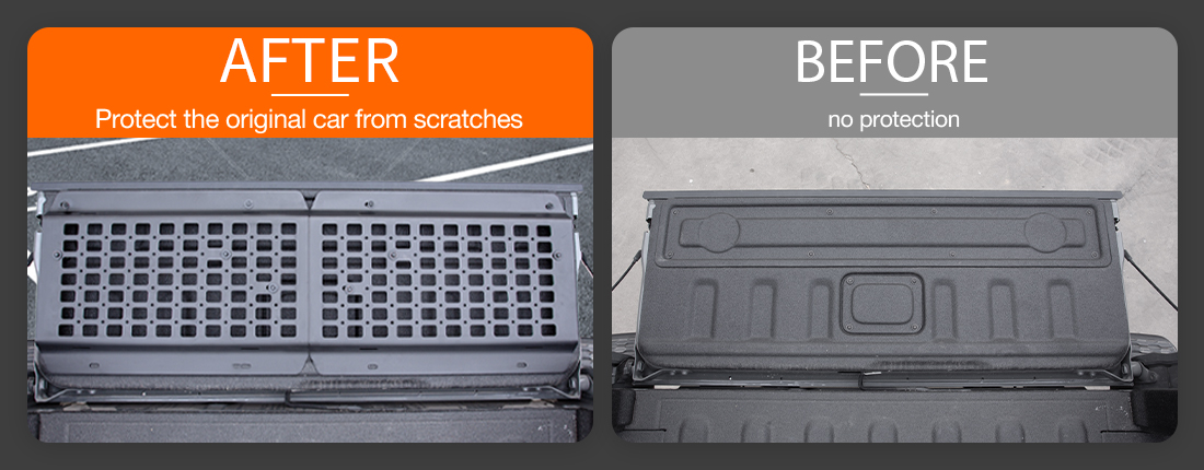 2.Premium Material: The tailgate molle panels and side bed molle panels replacement for Gladiator are made of carbon steel. The surface has been pickling, electrophoresis, sandblasting, spraying four processes, durable.