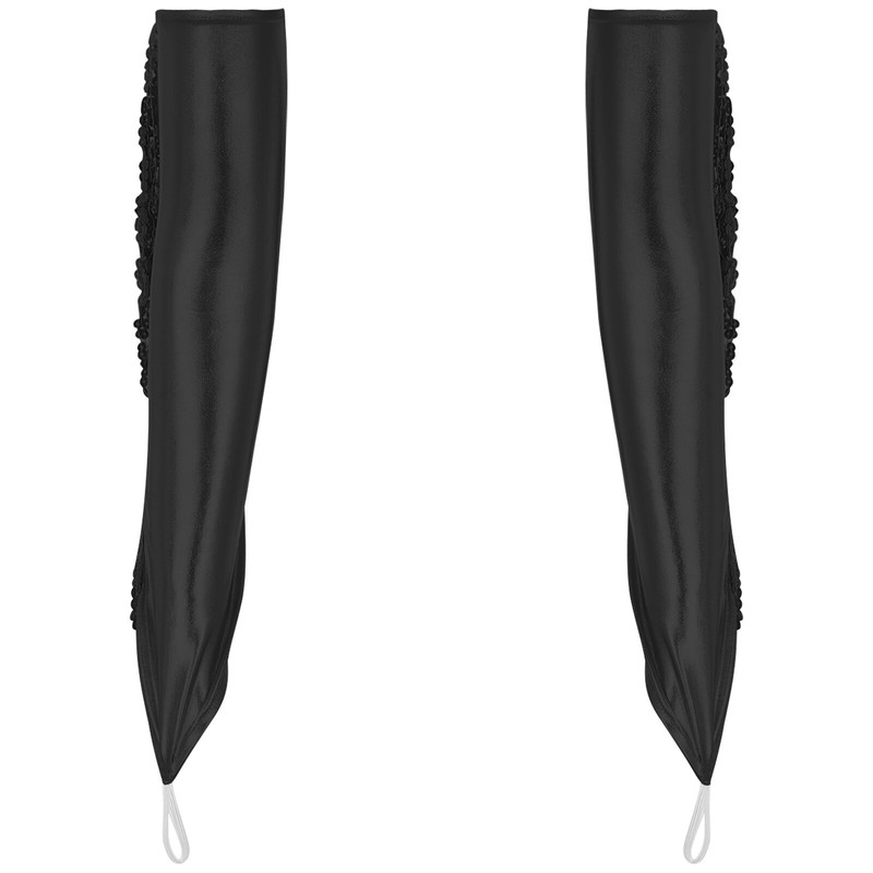 Metallic shiny gloves trim with sequin tassel, making you dazzling and eye-catching with each movement. The length is about 42.5cm/16.5 inch.