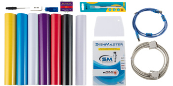 Con 6 rotoli extra di foglietti adesivi (colore: nero, bianco, rosso, verde, giallo chiaro, blu), 1 rotolo di carta ruvida (0,15 x 9 m/5,9" x 354.3"), 1 taglierino, 1 raschietto, 1 x Software SIGNMASTER, 1 x USB, 3 x Blade, 3 x Cavi, ecc. Le dimensioni compatte possono essere posizionate sul tavolo e facili da trasportare.