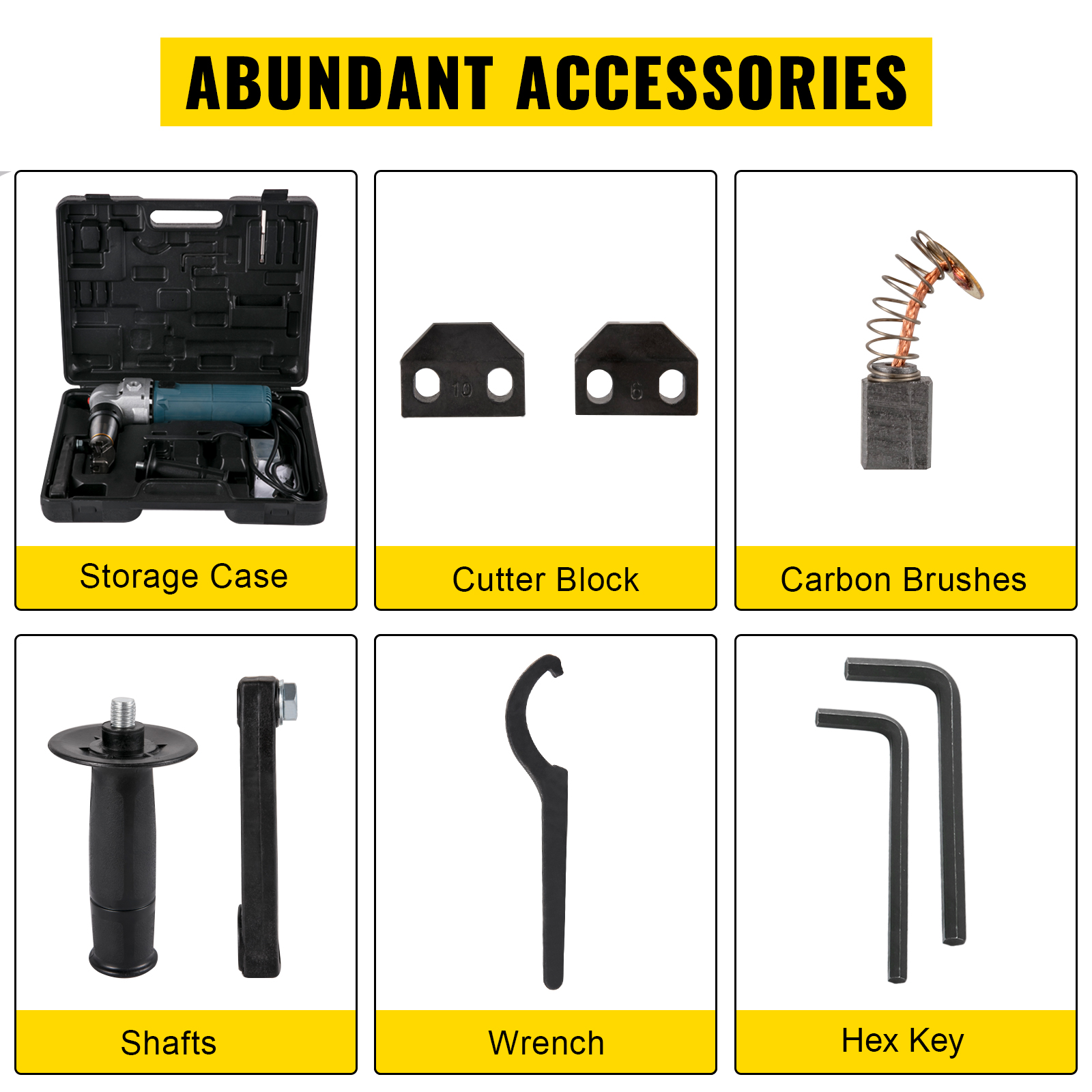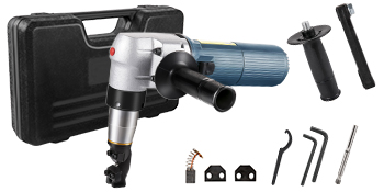 Questa roditrice per lamiera dispone di accessori sufficienti, tra cui blocco sostituibile, chiave inglese, chiavi e una cassetta degli attrezzi per un facile trasporto.