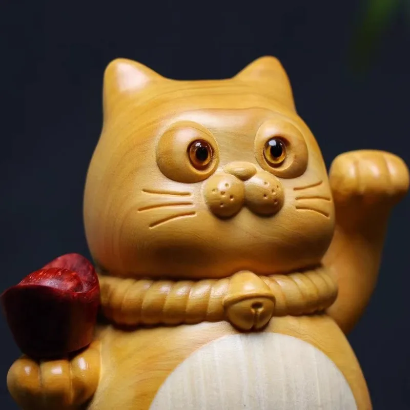 Majestic Hand-Carved Golden Sandalwood Maneki-Neko