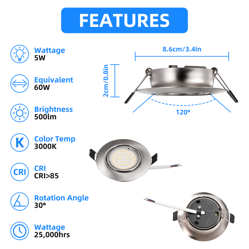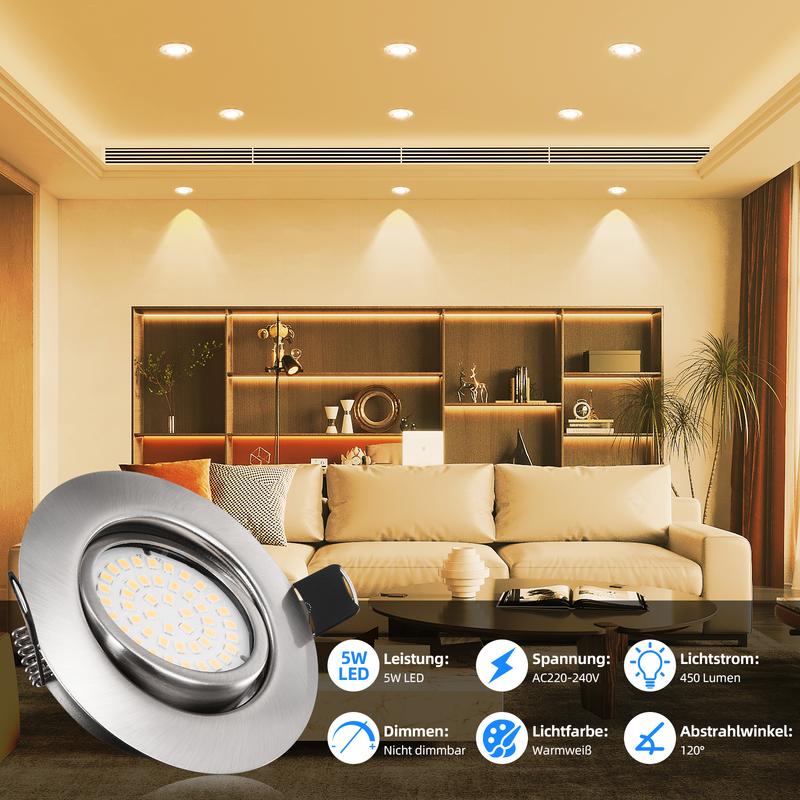 • ☀【Humanisiertes Design】 LED-Einbauleuchte Flexibel einstellbarer Lichtwinkel, 15 Grad links, 15 Grad rechts. Erleichtert die Erzeugung einer lokalen Beleuchtung und erfüllt den Effekt einer Beleuchtung mit mehreren Winkeln. Geeignet für mehrere Anwendungen.