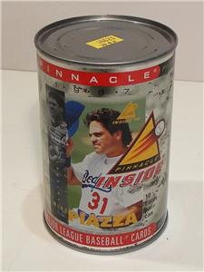 This is for a Pinnacle First every baseball card in a can. Can is sealed. There are 10 cards inside. 1997 features Mike Piazza Los Angeles Dodgers. Major League Baseball Cards. Can has some wear. Being sold as shown for your collection.