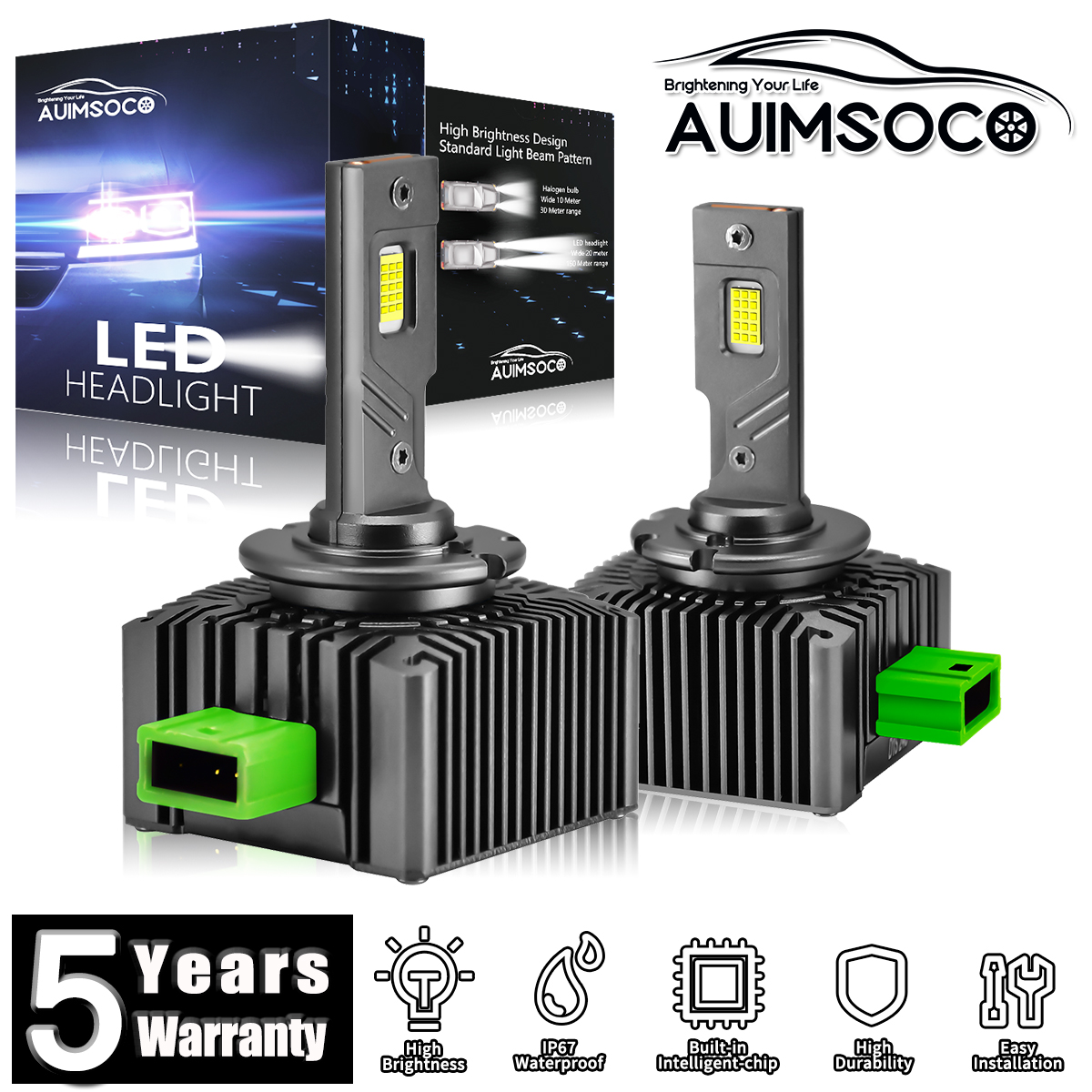 Efficient Cooling System: Whole aviation aluminum body, unique hollow-carved heat sink design with Intelligent IC make sure the LED conversion kits last longer.