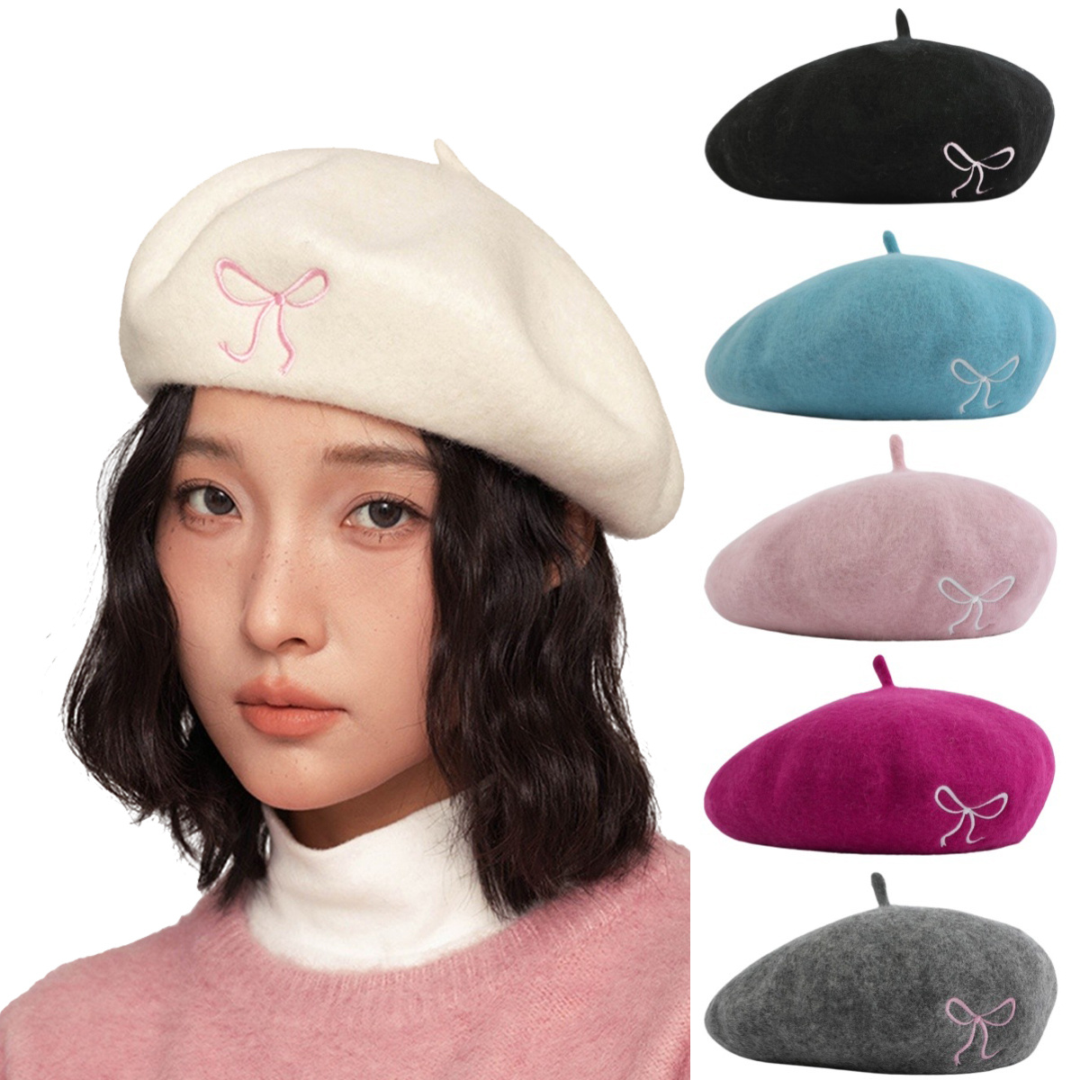 Chapeaux de béret pour femmes élégants nœud papillon classiques chapeaux de béret français pour femmes hiver