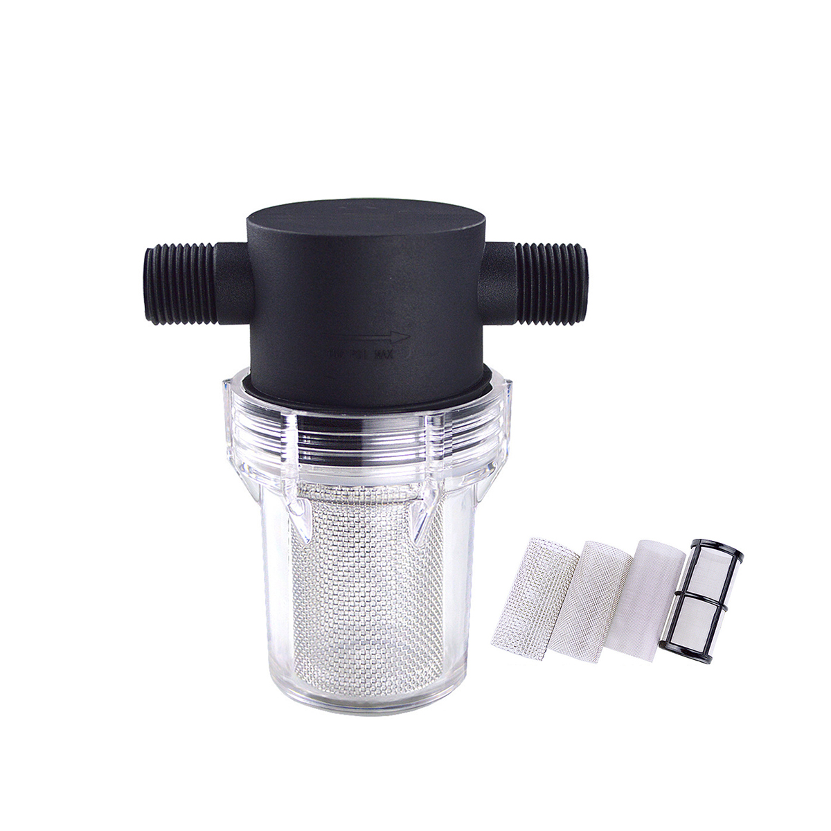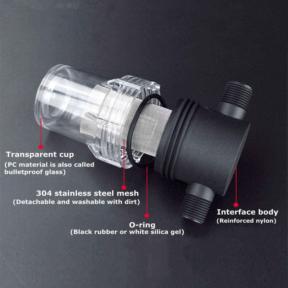 Le filtre convient aux tuyaux d'arrosage, aux nettoyeurs haute pression et aux véhicules récréatifs, qui peuvent filtrer efficacement les impuretés et augmenter la durée de vie de l'équipement d'eau.