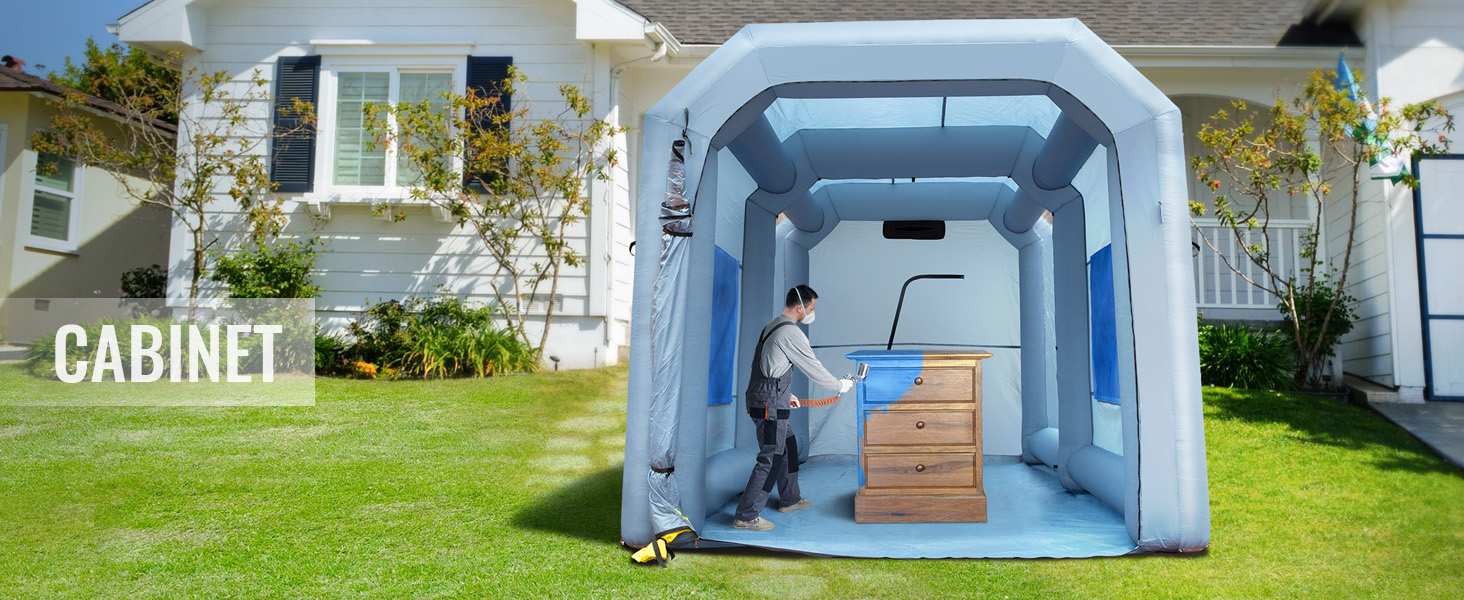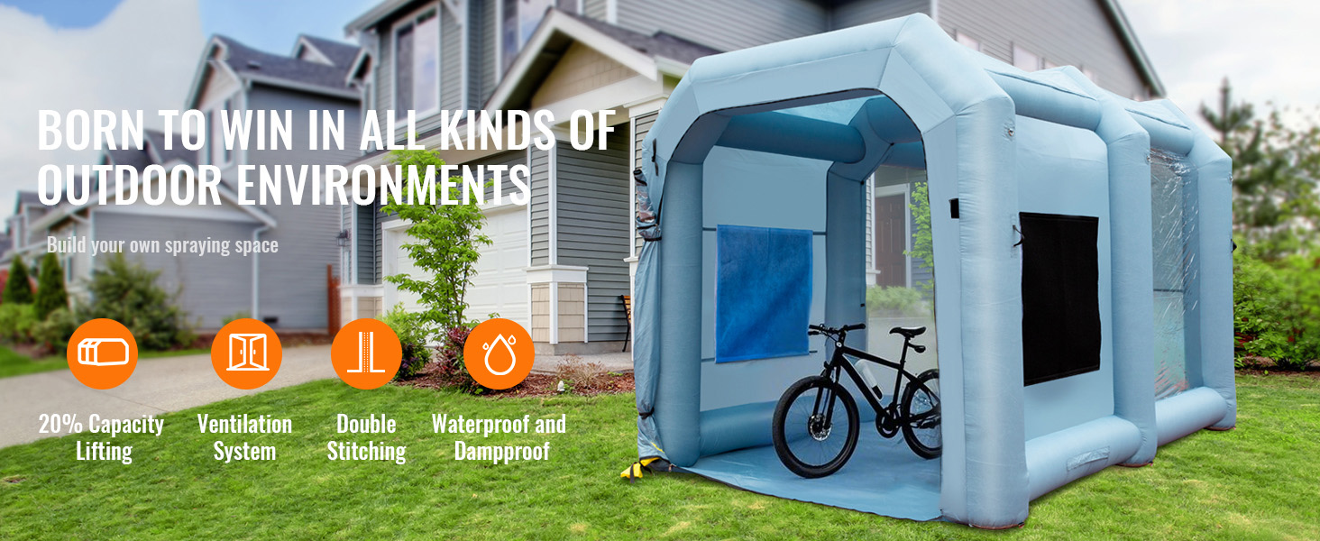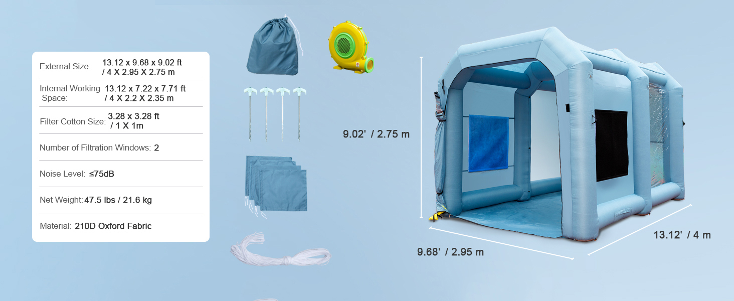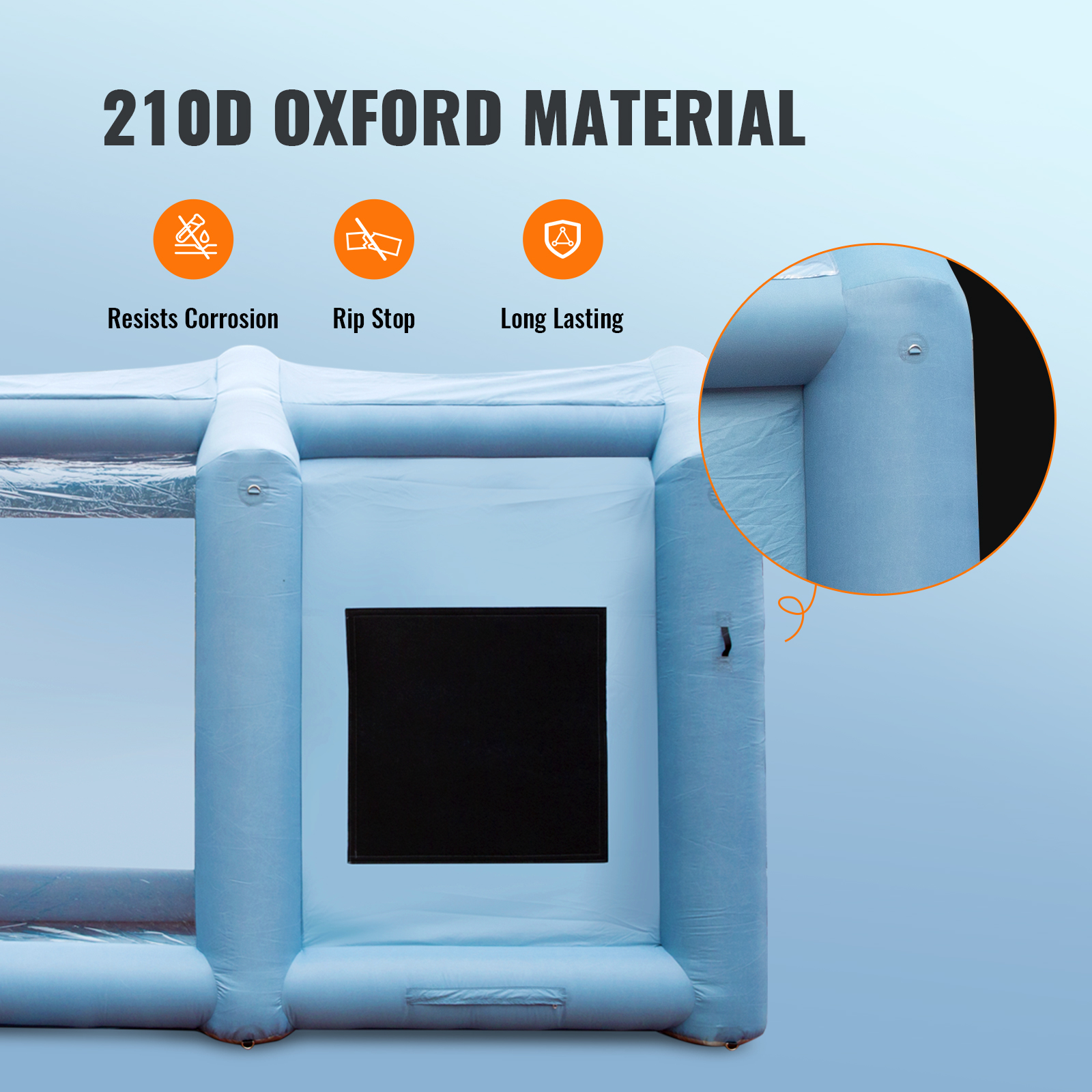 La tenda gonfiabile per verniciatura è realizzata in tessuto oxford 201D e materiale PVC, resistente allo sporco. Una scelta ideale per la verniciatura di auto, mobili, campeggio all'aperto, ecc.