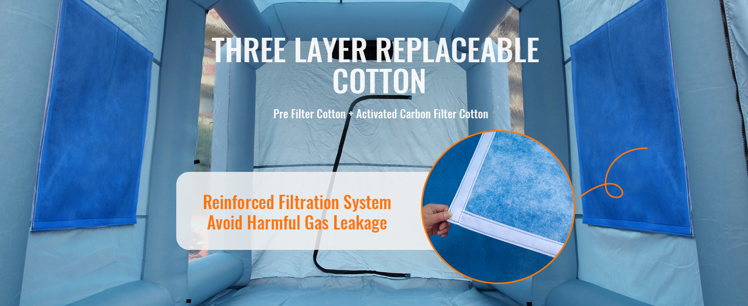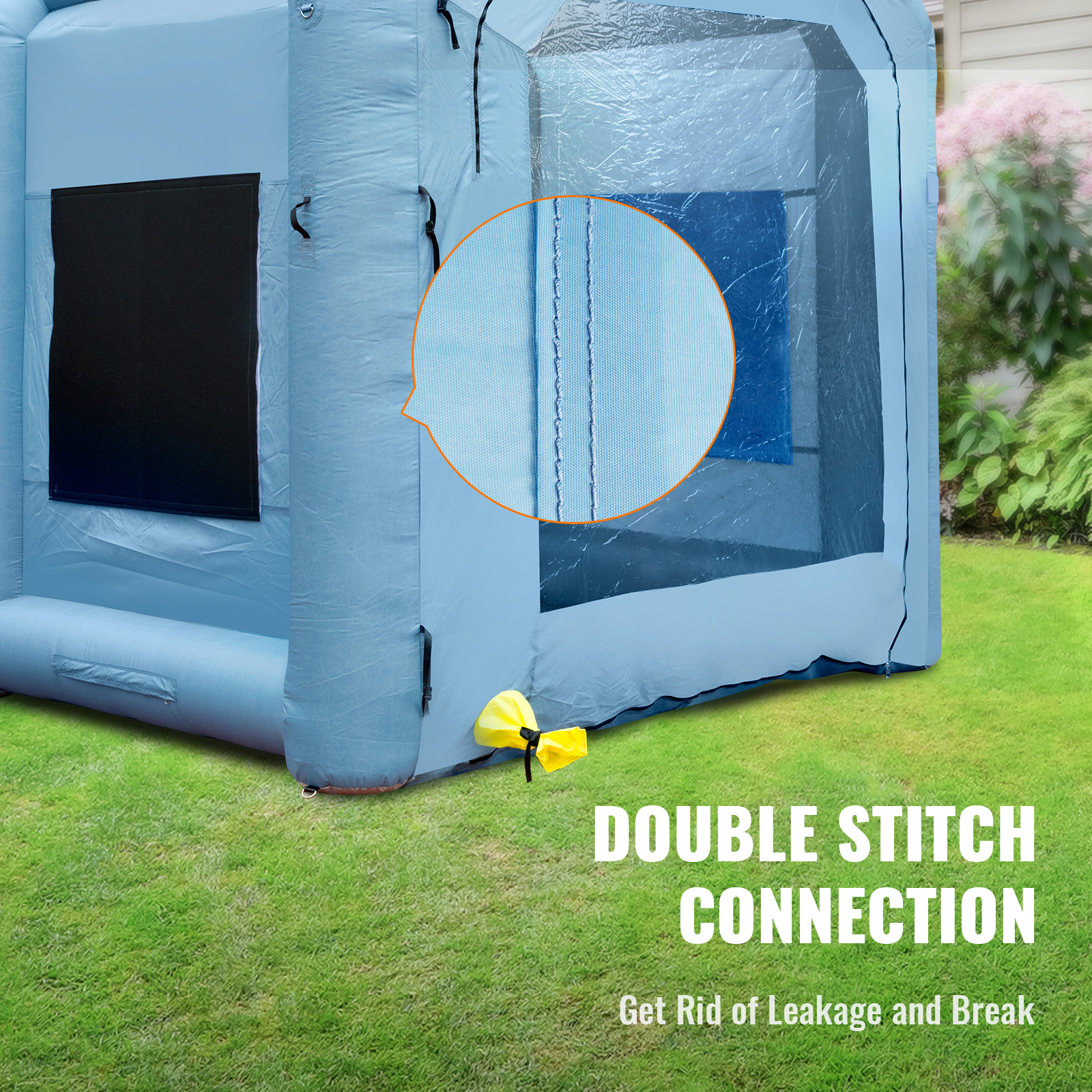 - Ampio Spazio Interno: l'ampio interno di questa cabina di verniciatura mobile offre uno spazio largo, consente di verniciare o riparare le parti della auto con facilità e convenienza. Inoltre, la camera di isolamento può essere utilizzata come spazio staccando completamente la porta con cerniera quando c'è l'esigenza di più spazio. La cabina di verniciatura gonfiabile offre la versatilità di cui hai bisogno per il lavoro all'aperto.