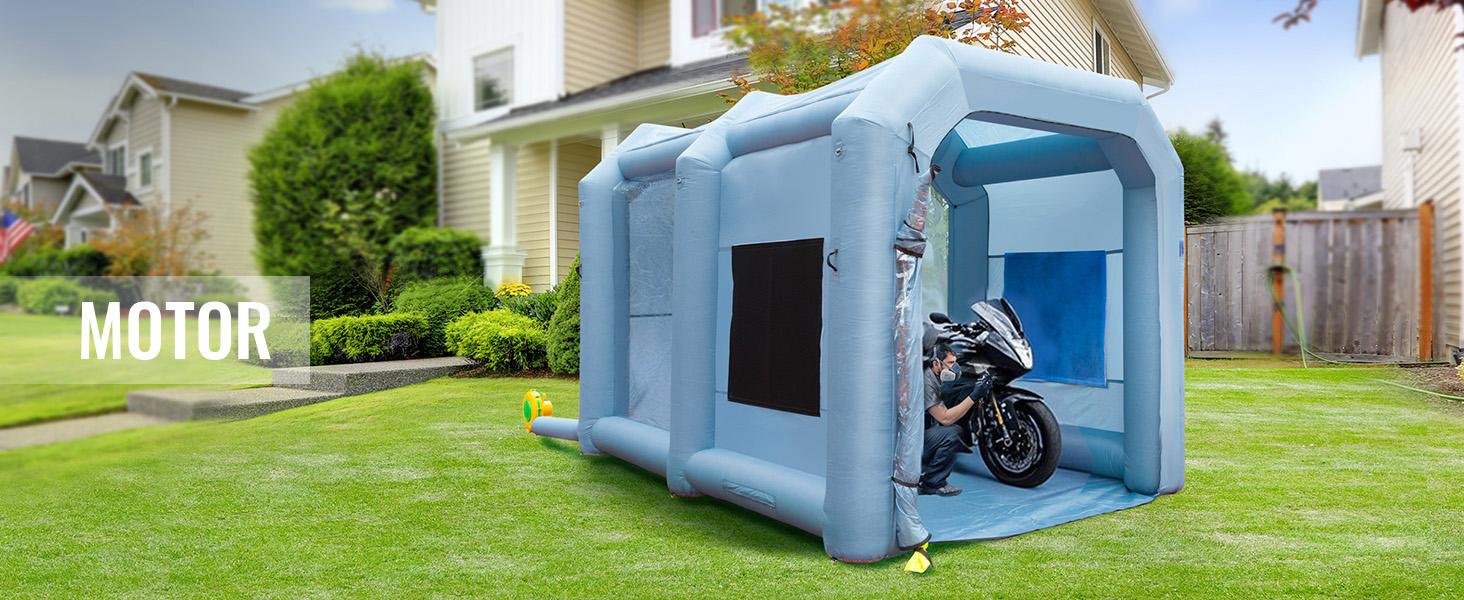 - Uso Multiplo: la cabina di verniciatura a spruzzo è adatta per motocicli o parti di automobili per la verniciatura e la riparazione. Può anche funziona come showroom per attività espositive, campeggio all'aperto e ausili medici.