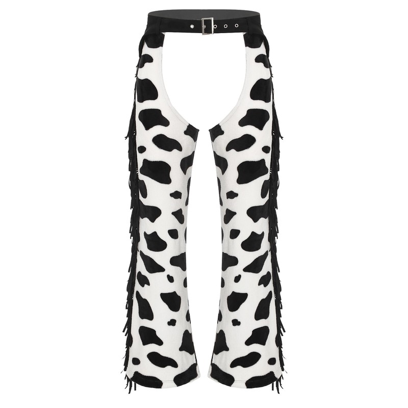 DE Herren Cowboy Kostüm Kuh Muster Hose Flanell Chaps mit Verstellbaren Taille