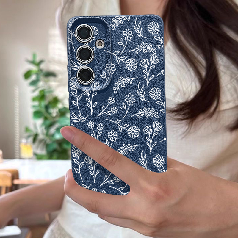 Etui floral silicone pour Samsung A56 A36 A16 A35 A55 S25 S24 S23 S22 S21 Cover
