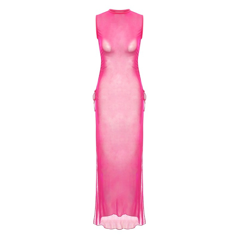 Bikini cover up sheer dress for women, round neck, sleeveless, maxi dress, see through soft mesh dress.