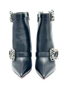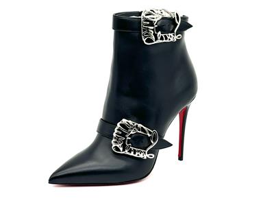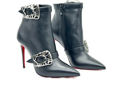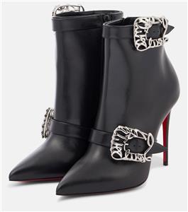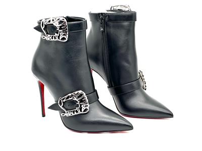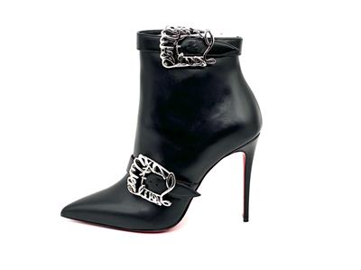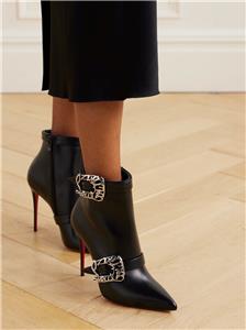 A closer look at the ornate buckles decorating Christian Louboutin’s Giddylina boots reveals they are actually cast in the shape of the brand's name - a cool finishing touch that makes them instantly recognizable. They’ve been crafted in Italy from supple leather and have 100mm stiletto heels.