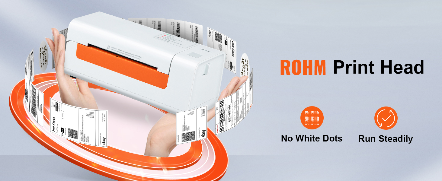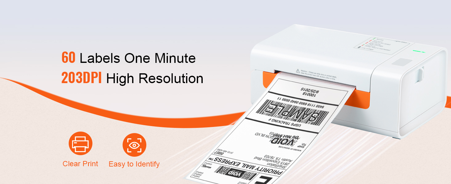 - Stampa Chiara & Stabile a 203 DPI: niente inchiostro, nessun toner. La stampante termica per etichette adotta la tecnologia termica più recente per offrire un'esperienza di stampa eccellente e risparmiare denaro. Progettata di un'alta risoluzione da 203 dpi, che semplifica l'identificazione di piccole stampe o etichette con codici a barre. Non ci sono punti bianchi e la stampa rimarrà sempre stabile grazie alla testina di stampa termica ROHM.