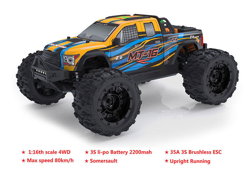 ZD Racing Remote Control MT-16 RC Car 1:16 4WD 2.4GHZ 4CH Monster Truck Car 2845 Brushless Motor 35A ESC 80Km/h for Kids Adults