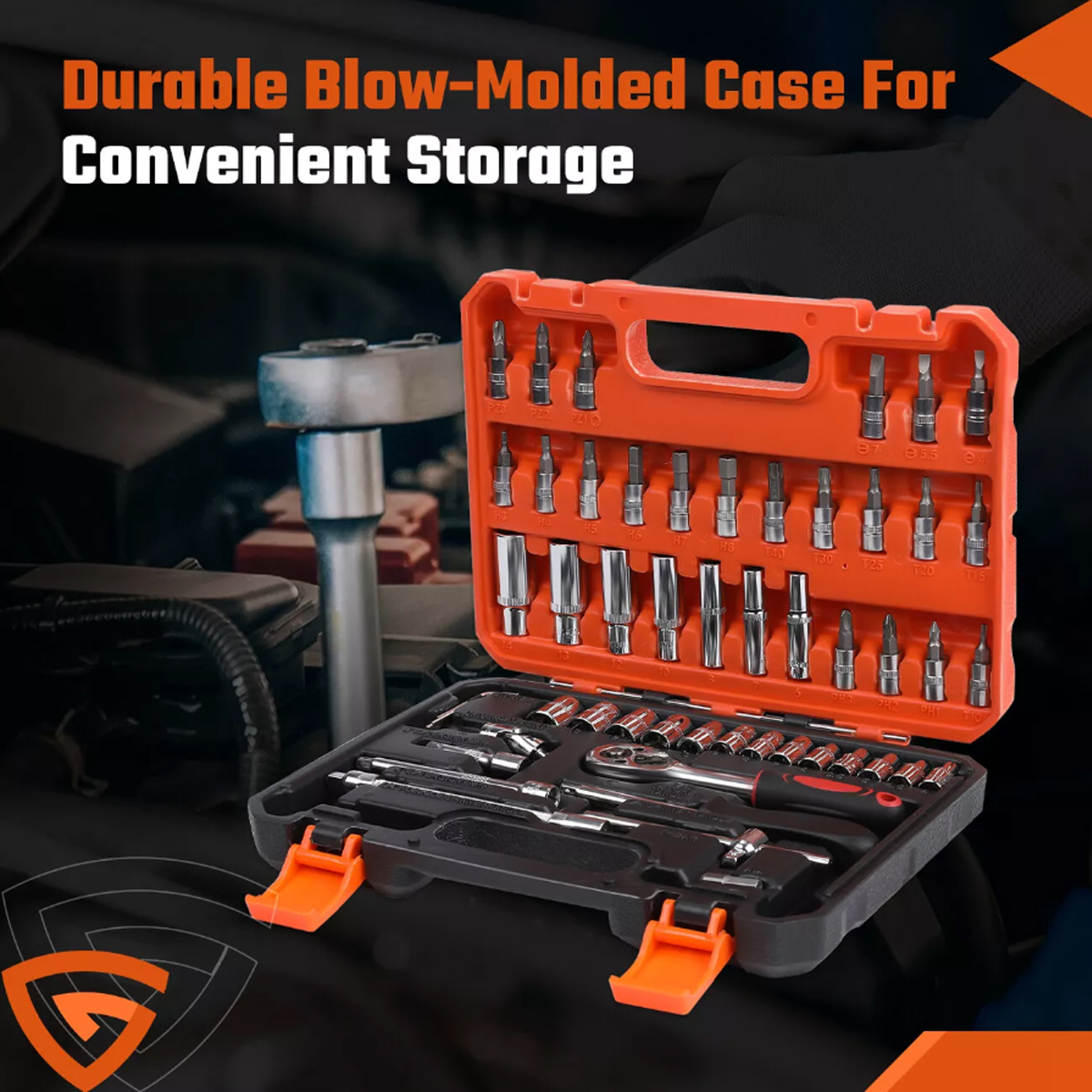 Mechanics Tool Set and Ratchet Socket Set 1/4in 3/8in Drive 53 Pc Metric W/Case