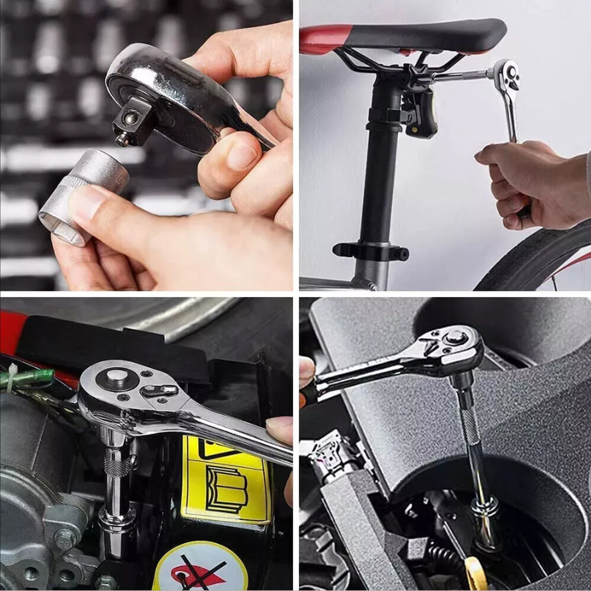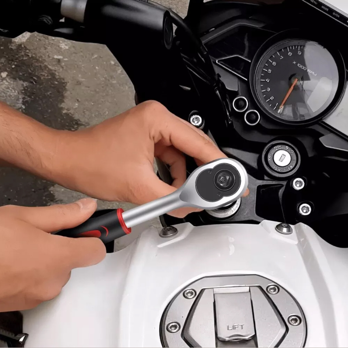 About this article 〚HIGH QUALITY〛: The socket, screwdriver bit and wrench set are made of high-quality chrome vanadium steel for longer service life. All tools are highly polished and chrome plated. 〚Durable Design〛: The locking ball design on the head of the extension can easily tighten and loosen the socket. Perfect for tradesmen, tradesmen, construction workers, mechanics, auto bike mechanics and more. 〚Comprehensive Socket Kit〛: Comes with ratchet and extension rod, screw handle and socket converter. 〚Switchable Ratchet Wrench〛: The included switchable ratchet has 72 fine teeth and a two-part handle provides more grip. You can quickly change the direction of the screw using the lever on your head. The ball lock ensures the nut is securely fastened.