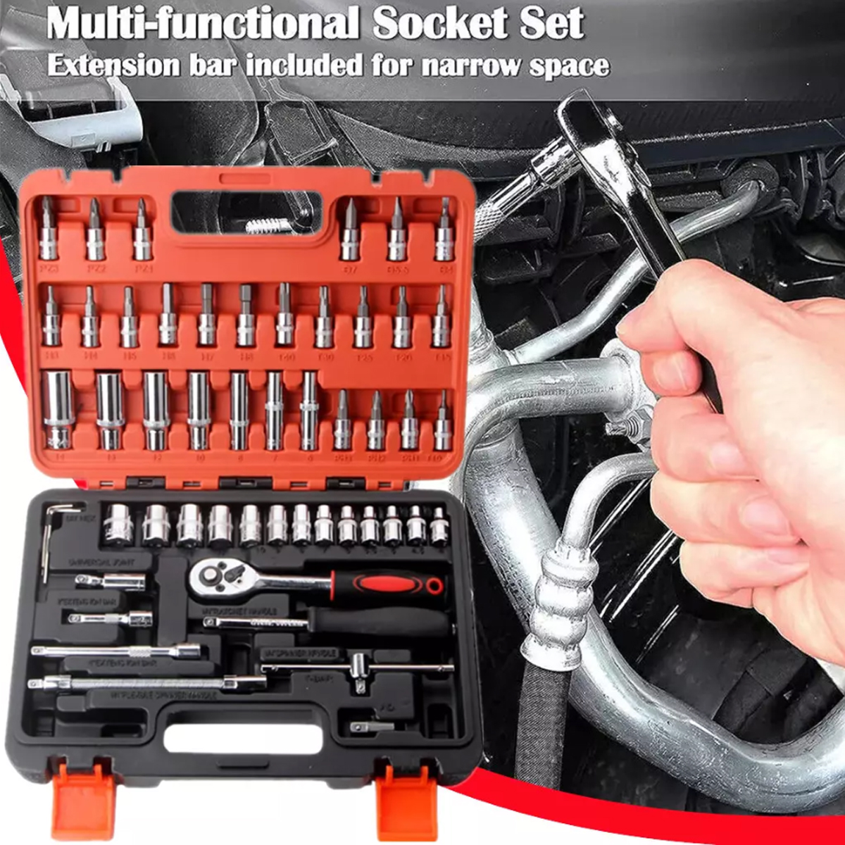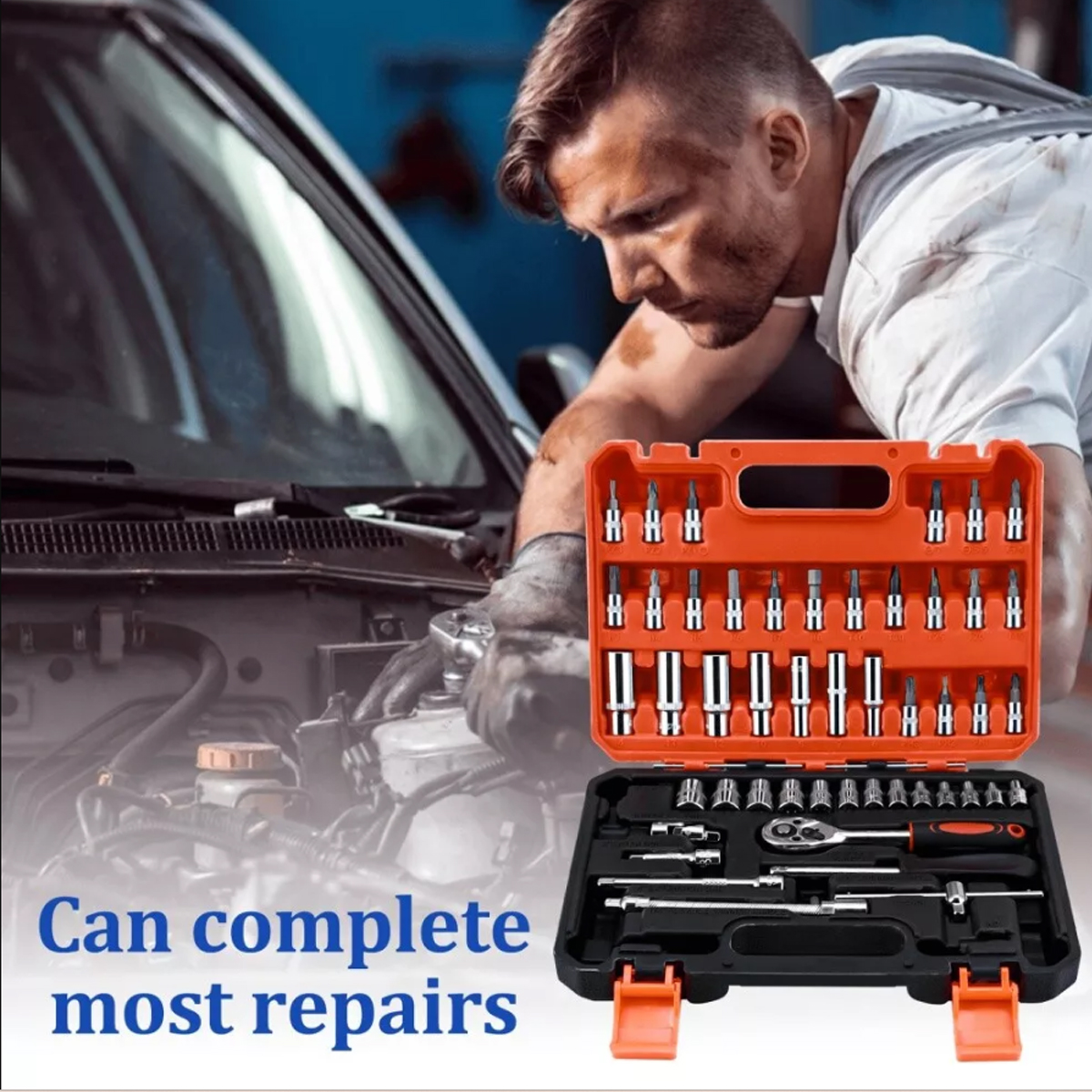 This set of 53 1/4in metric socket sets includes 53 pieces of screwdriver head, screwdriver handles, extension rods, sockets, and wrenches, which can meet various mechanical maintenance needs The sockets set includes various sizes of sleeves and accessories, suitable for screws and of different sizes. Durable chromesteel material ensures long-term use. Precisions machining enables it to provide excellent tightening force and stability Suitable for mechanics, automotive repair workers, DIY enthusiasts, and other people who need mechanical maintenance and disassembly. It can be widely used in scenarios such as automotive repair, home repair, mechanical equipment maintenance, etc
