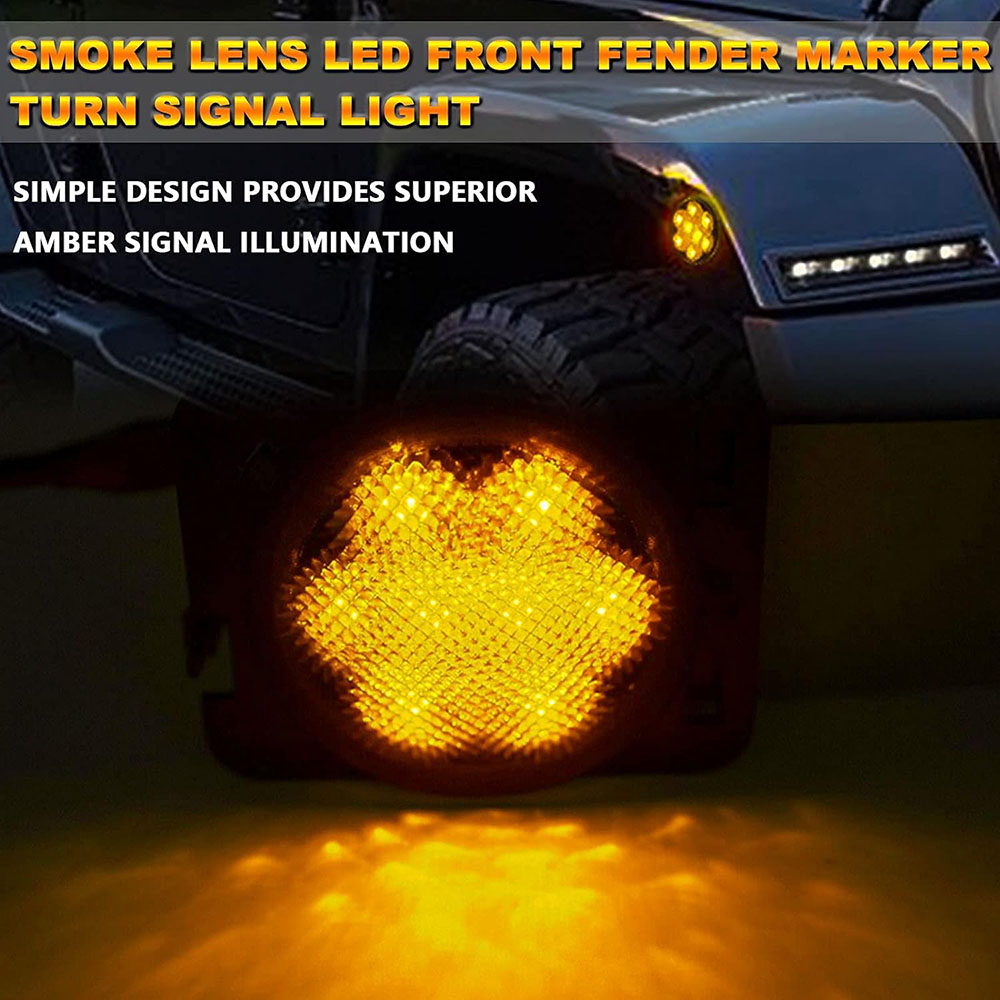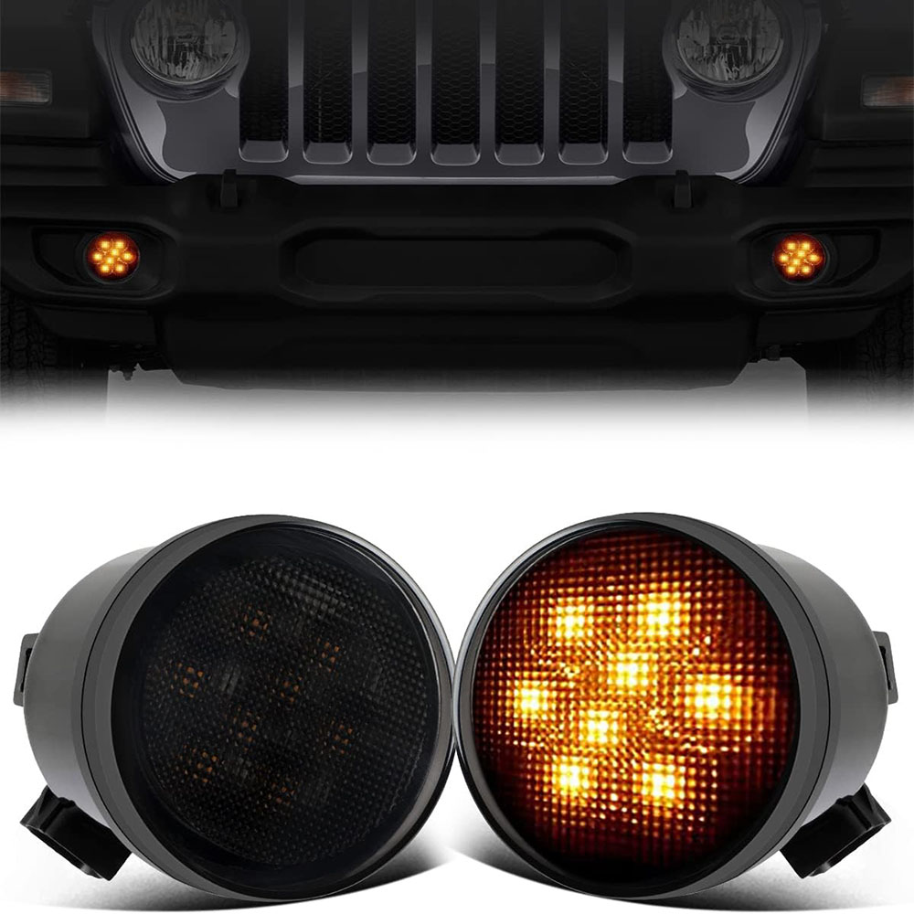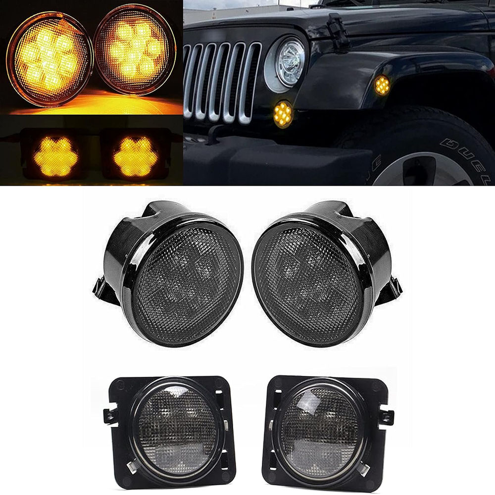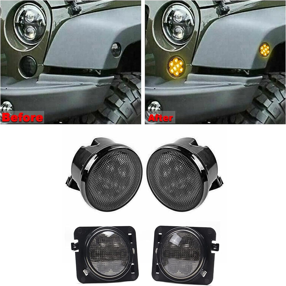 Front LED Turn Signal Side Marker Fender Lights Smoked Lens for Jeep Wrangler JK 07-17