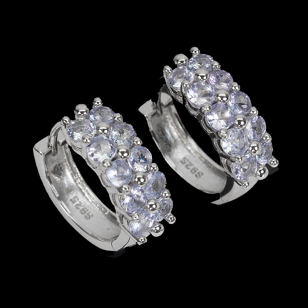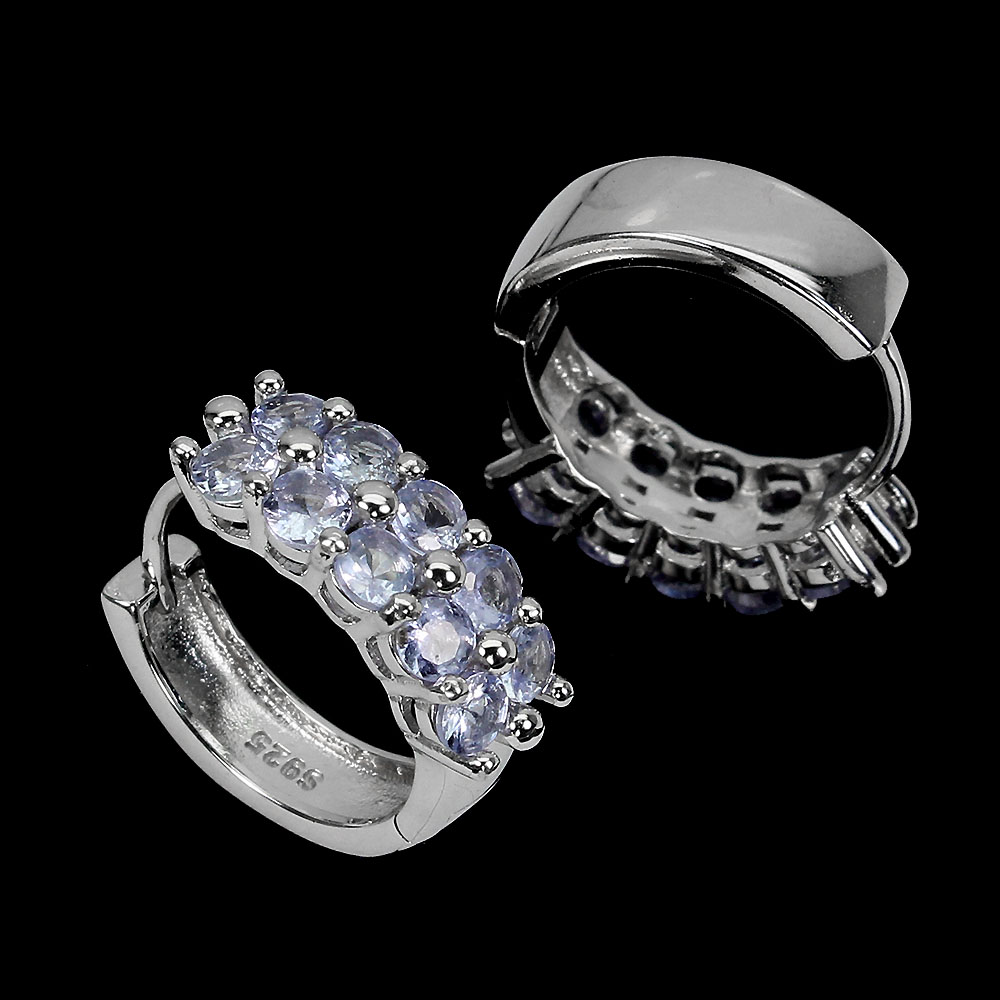 Unheated Round Blue Tanzanite 3mm White Gold Plate 925 Sterling Silver Earrings