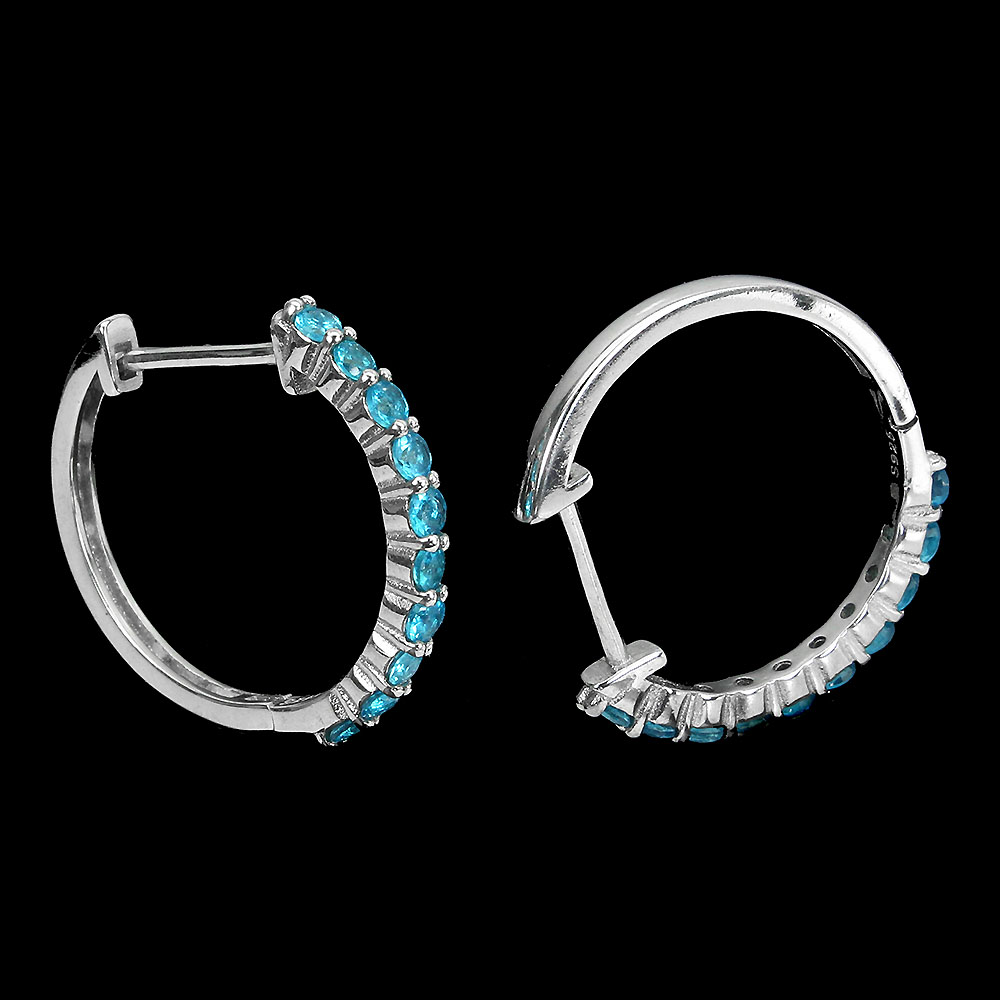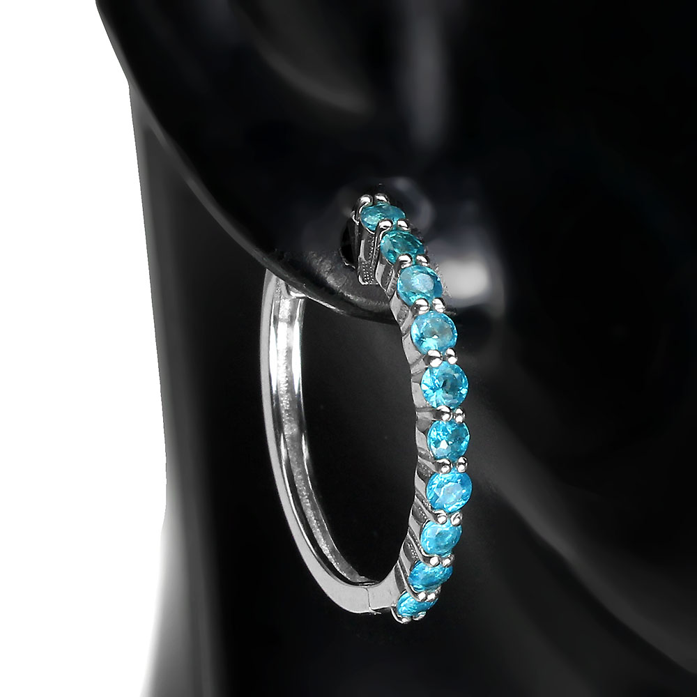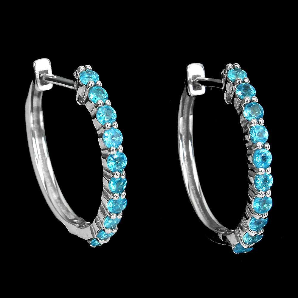 Unheated Round Blue Apatite 2mm 14k White Gold Plate 925 Sterling Silver Earrings
