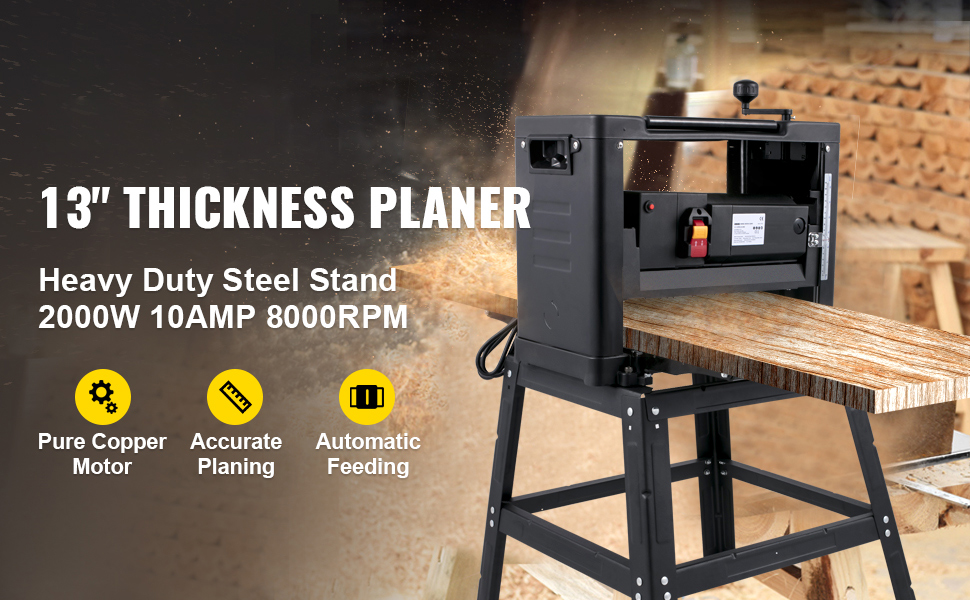 Questa pialla da 13 pollici di spessore riutilizza il legno vecchio, stagionato, ruvido e consumato per dargli una finitura straordinariamente liscia. Il potente motore da 2000 W può pianificare in modo efficiente a una velocità di avanzamento di 236"/min (6 m/min). Sono combinati con un supporto per impieghi gravosi per impedire alla piallatrice di camminare o oscillare durante il funzionamento. Dispone inoltre di un'interfaccia di scarico della polvere per collegandosi al depolveratore, creando un ambiente di lavoro pulito, è uno strumento ideale per riportare in vita le tue tavole usurate!