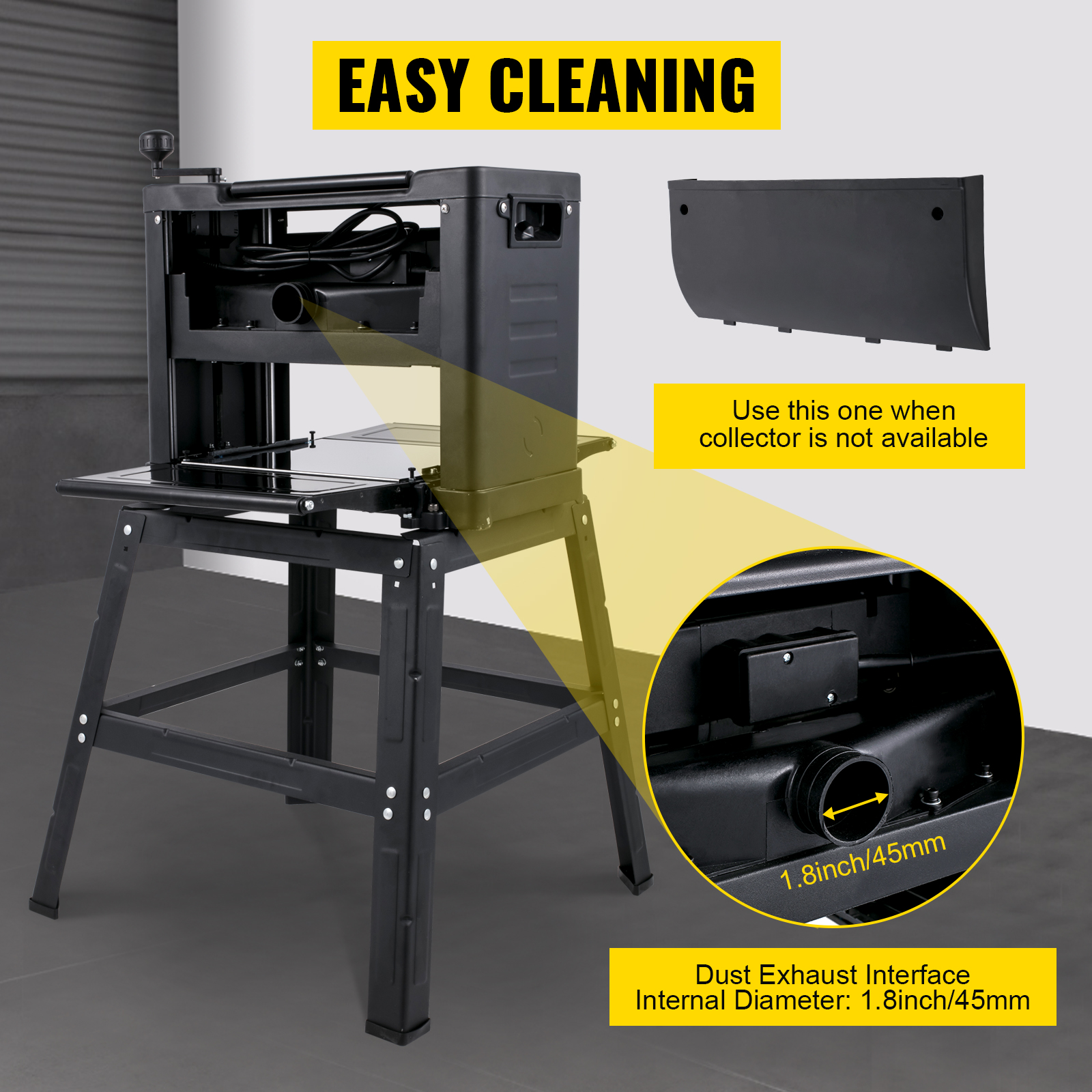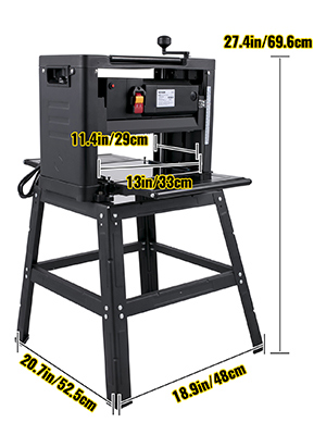 Per tua comodità, ti forniamo un supporto rimovibile per durata e longevità. Di conseguenza, puoi utilizzare il nostro supporto per sostituire il tavolo di lavoro. Inoltre, quattro piedini in gomma impediscono alla piallatrice di oscillare durante il funzionamento. Inoltre, puoi piegare le piastre di estensione per riporle facilmente.
