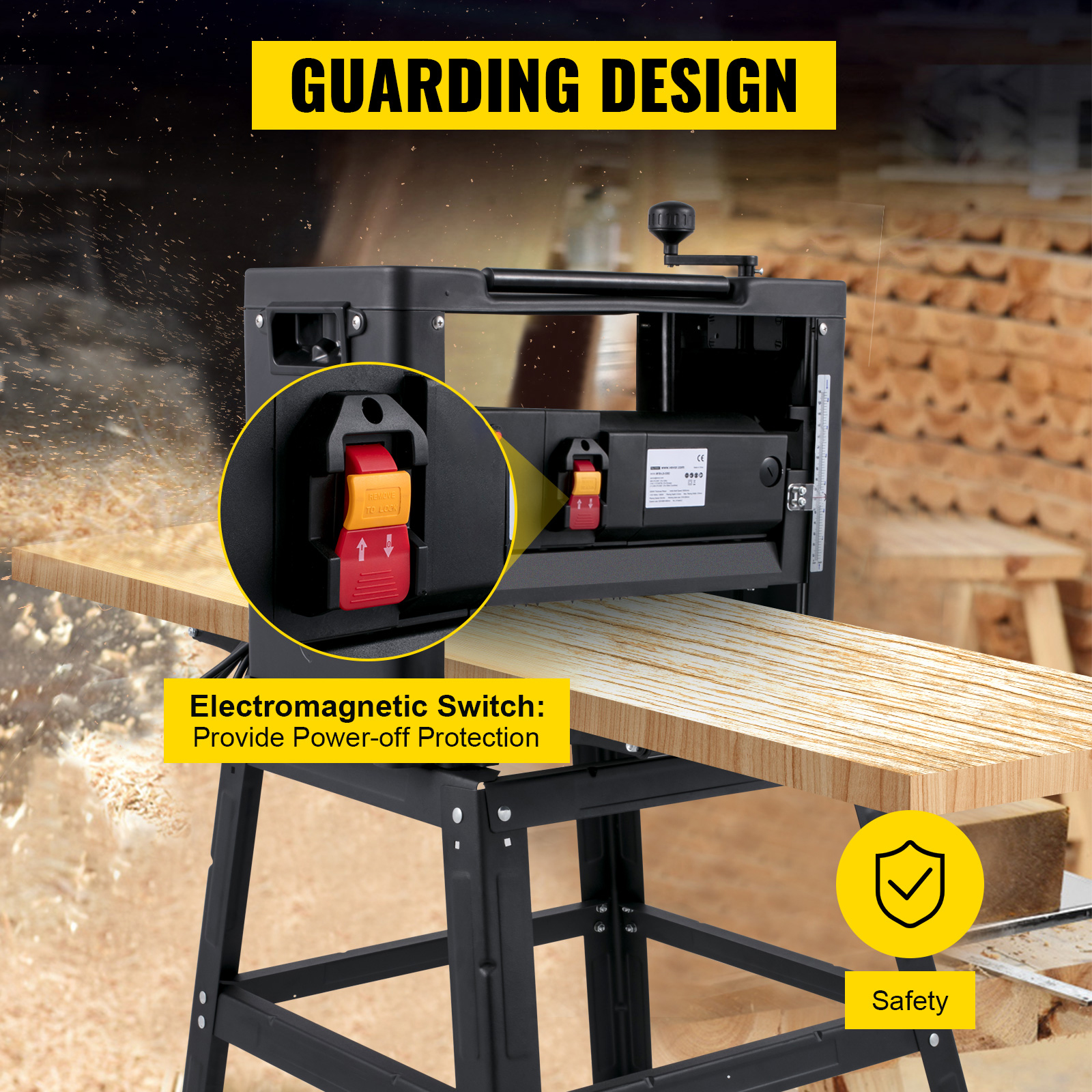 L'interruttore elettromagnetico di protezione dallo spegnimento e la protezione da sovracorrente sono dotati, garantendo la sicurezza durante i lavori di pianificazione del legno.