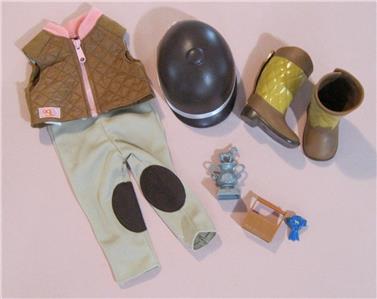 These clothing pieces are in wonderful condition. Clean. Ready to play with. Includes blue ribbon, trophy, etc.