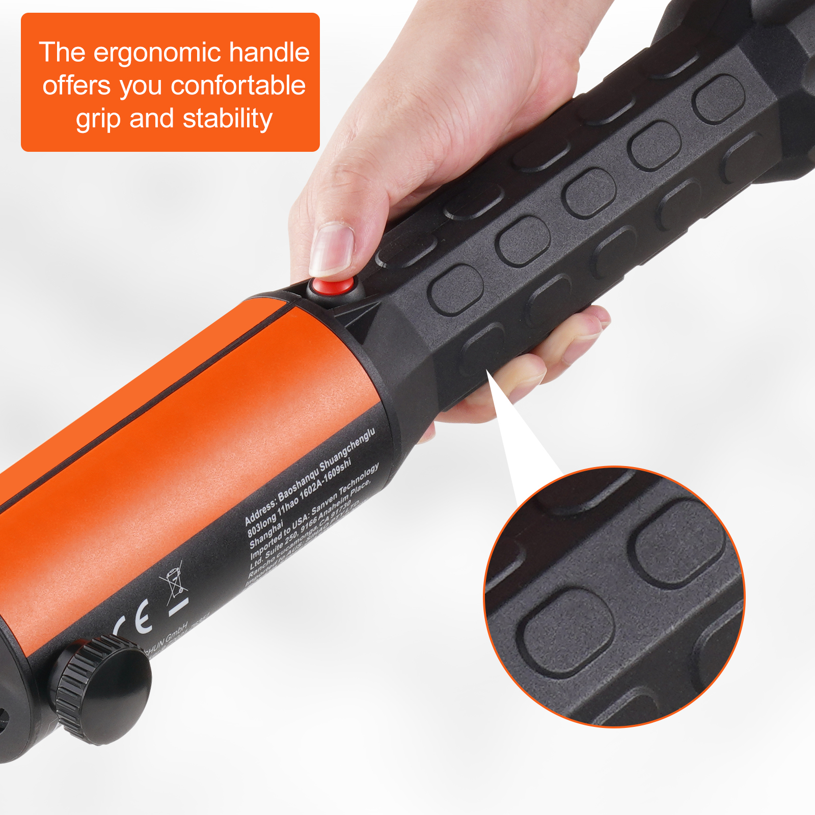 Il foro di ventilazione all'estremità dell'impugnatura garantisce un'efficace dissipazione del calore e un'elevata efficienza di lavoro, mentre la potente luce a LED illumina l'area di lavoro.