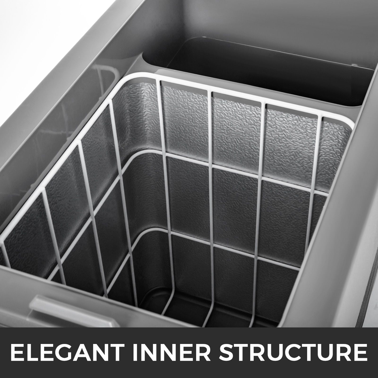 Compatibile con alimentazione a 12/24V CC e 110-240V CA, questo frigorifero portatile può essere collegato sia all'accendisigari del veicolo che alla rete elettrica domestica.