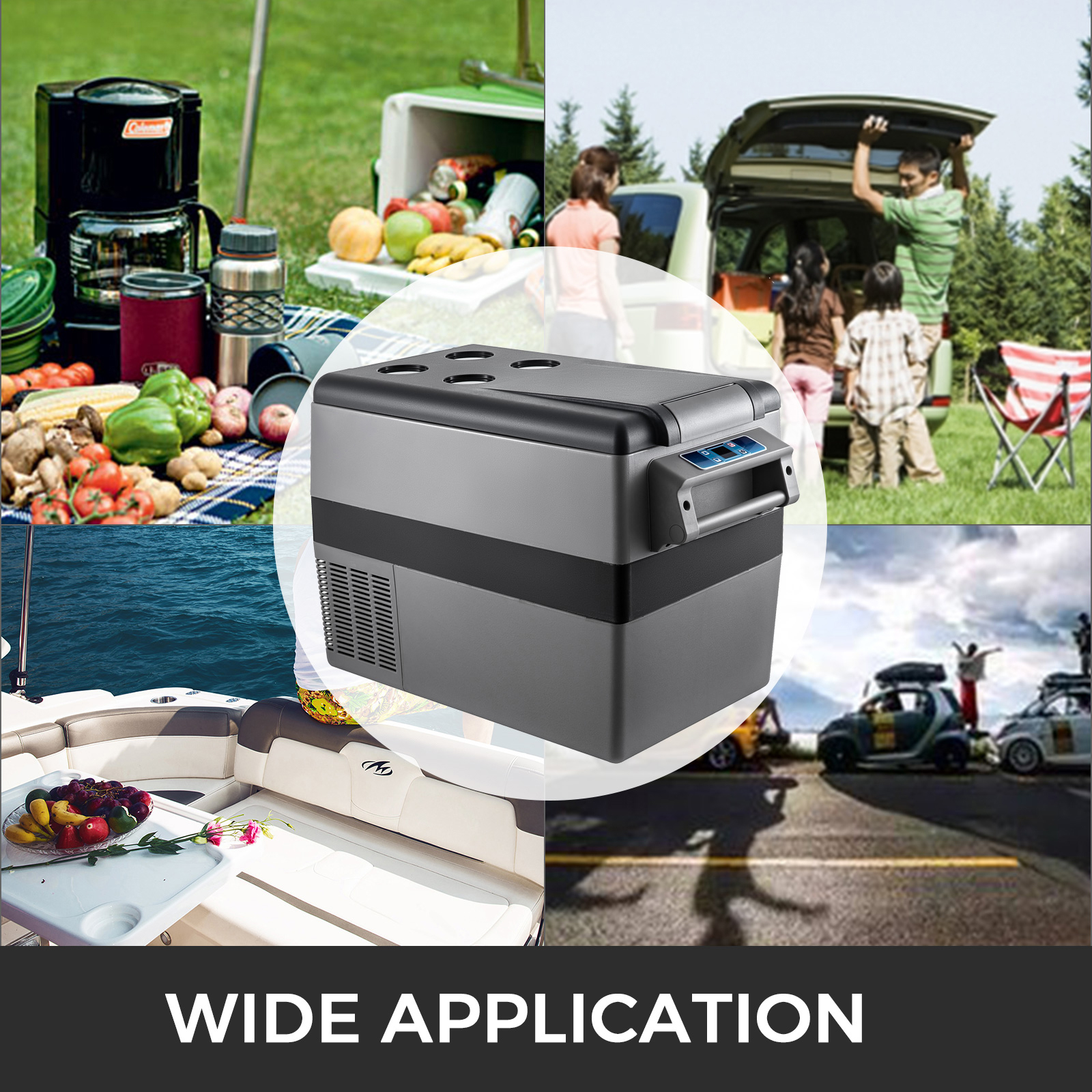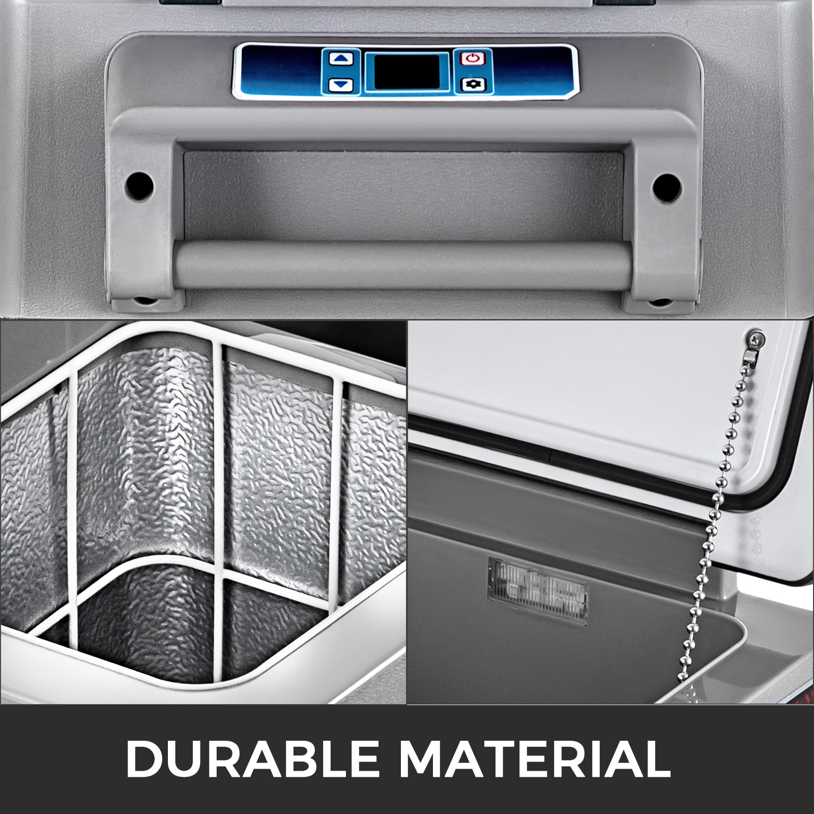 Questo frigorifero portatile per auto presenta un design moderno con una combinazione di colori nero e grigio. Grazie alle sue dimensioni compatte, al pannello di controllo digitale e ai due cavi di alimentazione inclusi, è ideale per l'utilizzo sia in ambienti interni che esterni. È la soluzione perfetta per mantenere cibi freschi e bevande fredde, sia a casa che durante i viaggi.