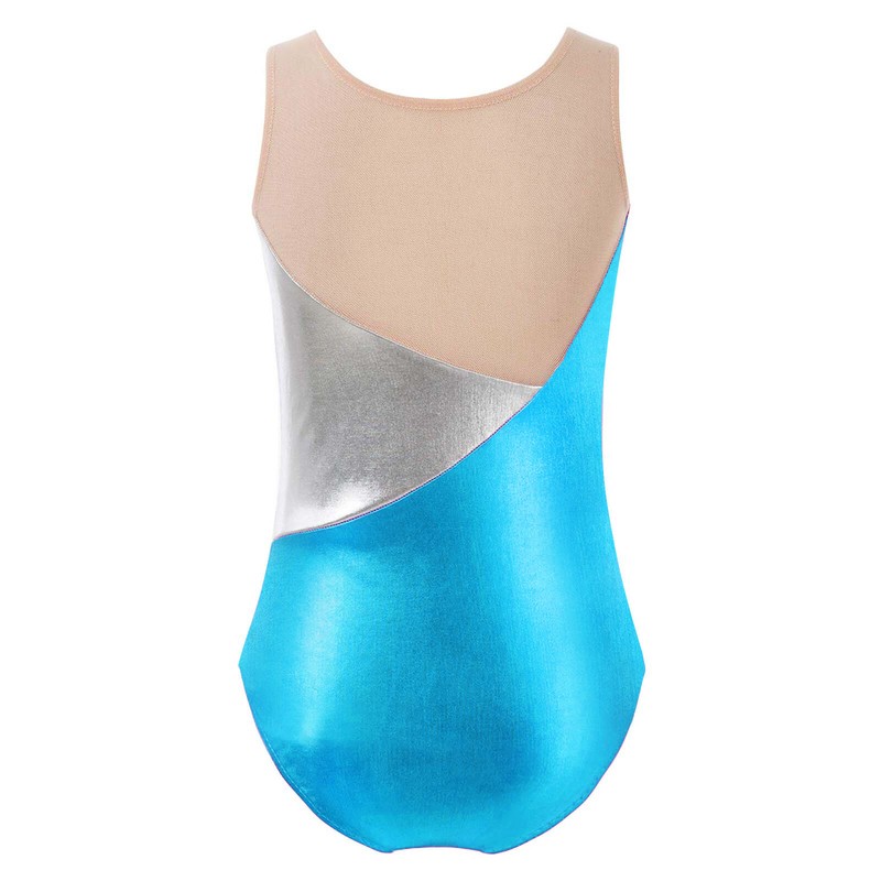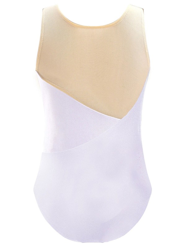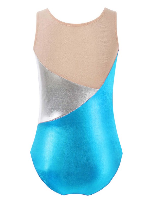 Kids Girls Sleeveless Mesh Patchwork Leotard.