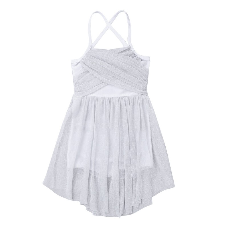 Ruffled glittery mesh skirt is attached around the elastic waist. Beautiful dancewear for your girl.
