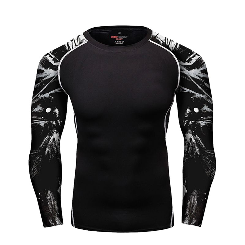 Men Stretchy Sport Top Long Sleeve Print Dry Quickly Moisture-wicking Sport Gym Fitness Cycling Climbing Top.
