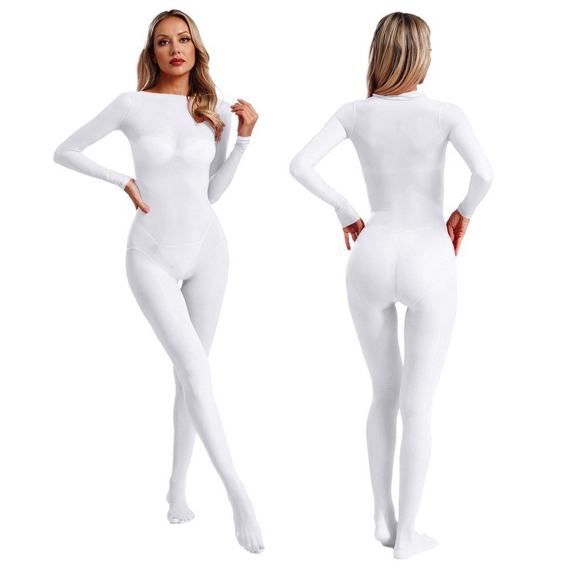 Entworfen mit Rundhalsausschnitt, langen Ärmeln, mit Füßen Bodenlang Body, dehnbar für die Passform, Einheitsgröße passt den meisten.